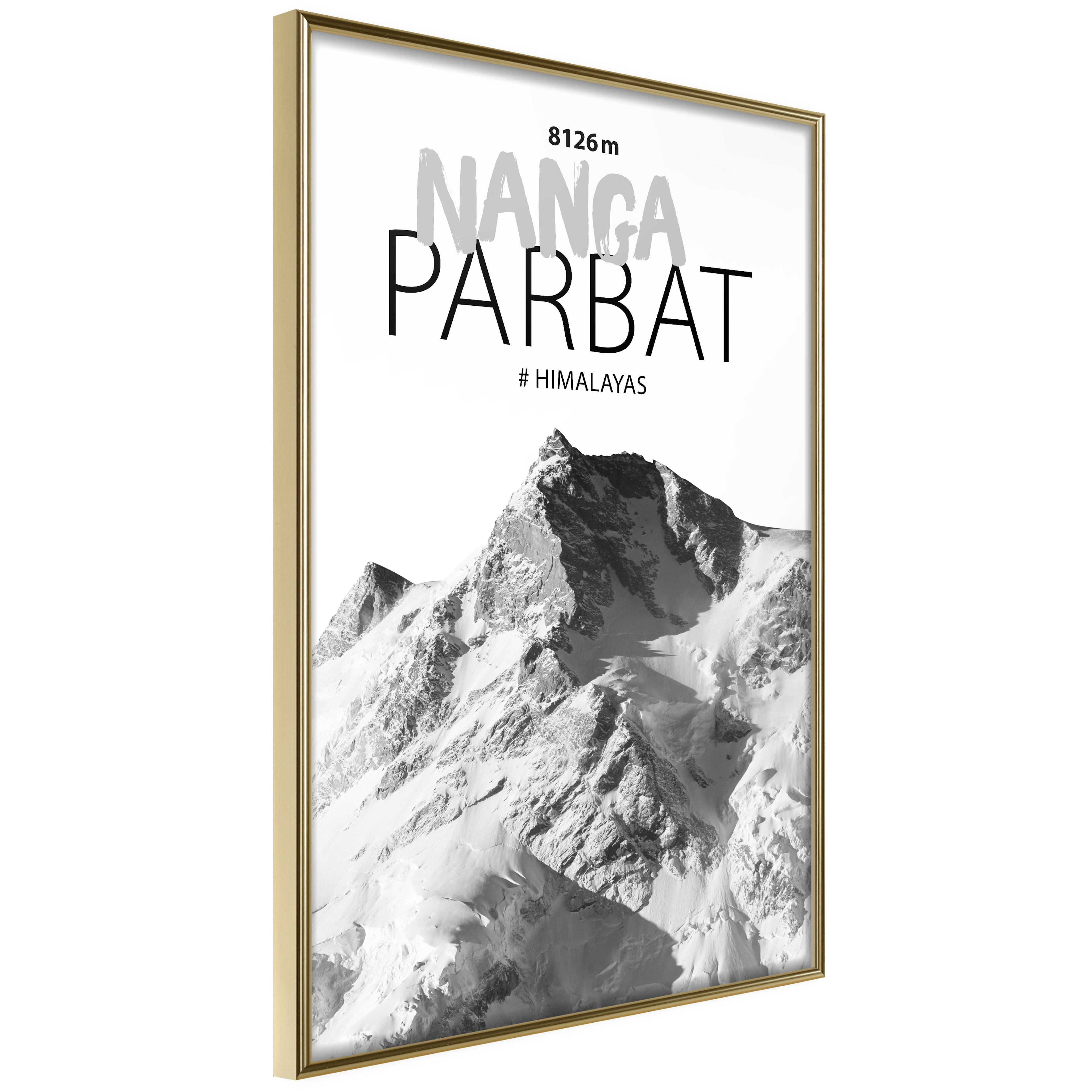 Poster Artgeist Affisch Nanga ParbatGuld ram med passepartout, 30x45 cm