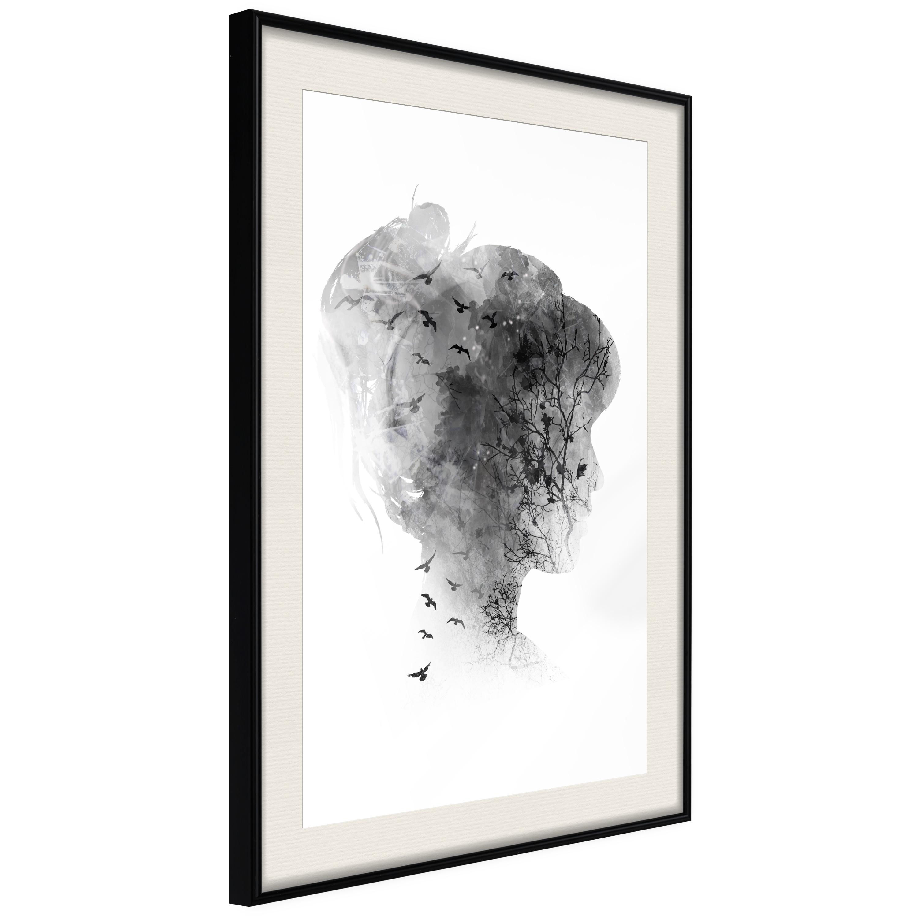 Passepartouten i écru betonar färgern på affischen och skapar en extra kontrast mellan grafiken, ramen och väggen. Dessutom ger den ramen ett svagt tredimensionellt intryck och fungerar även som ett skyddslager som ytterligare skyddar afischen. Affischen är säkrad med akrylglas och en hänganordning finns på ramens baksida.