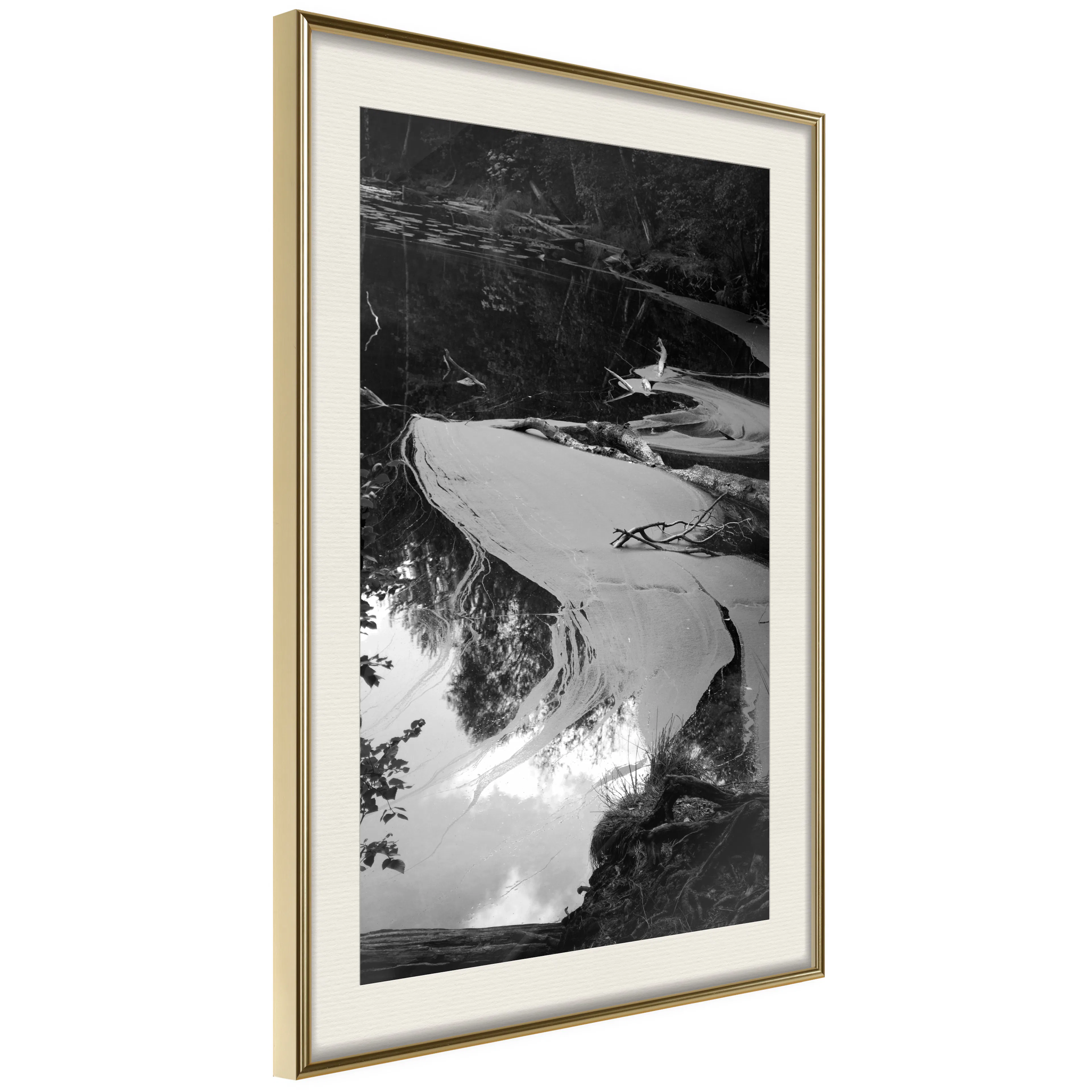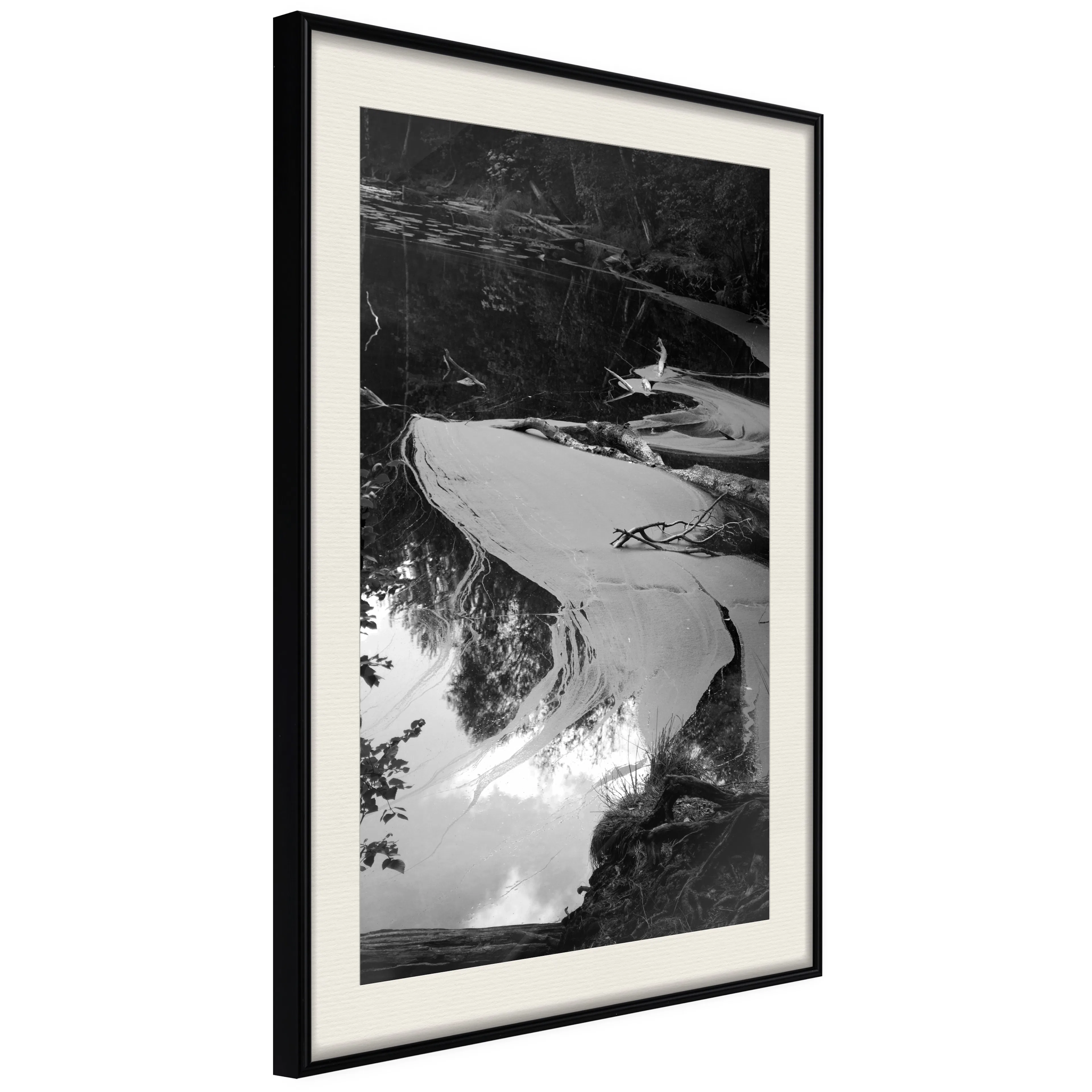 Passepartouten i écru betonar färgern på affischen och skapar en extra kontrast mellan grafiken, ramen och väggen. Dessutom ger den ramen ett svagt tredimensionellt intryck och fungerar även som ett skyddslager som ytterligare skyddar afischen. Affischen är säkrad med akrylglas och en hänganordning finns på ramens baksida.