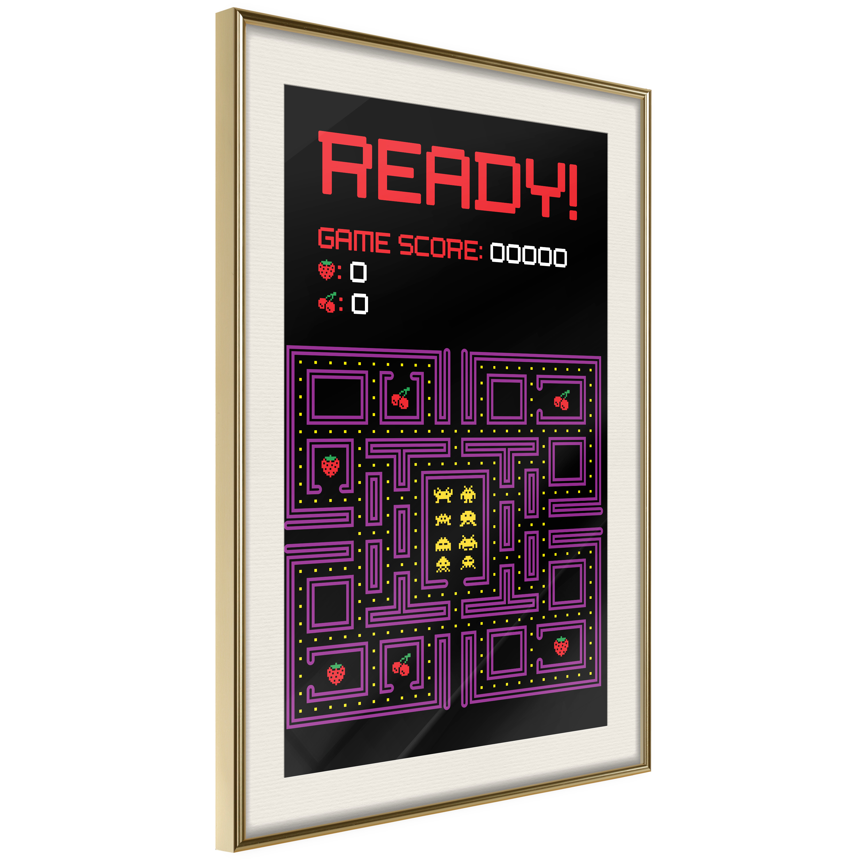 Passepartouten i écru betonar färgern på affischen och skapar en extra kontrast mellan grafiken, ramen och väggen. Dessutom ger den ramen ett svagt tredimensionellt intryck och fungerar även som ett skyddslager som ytterligare skyddar afischen. Affischen är säkrad med akrylglas och en hänganordning finns på ramens baksida.