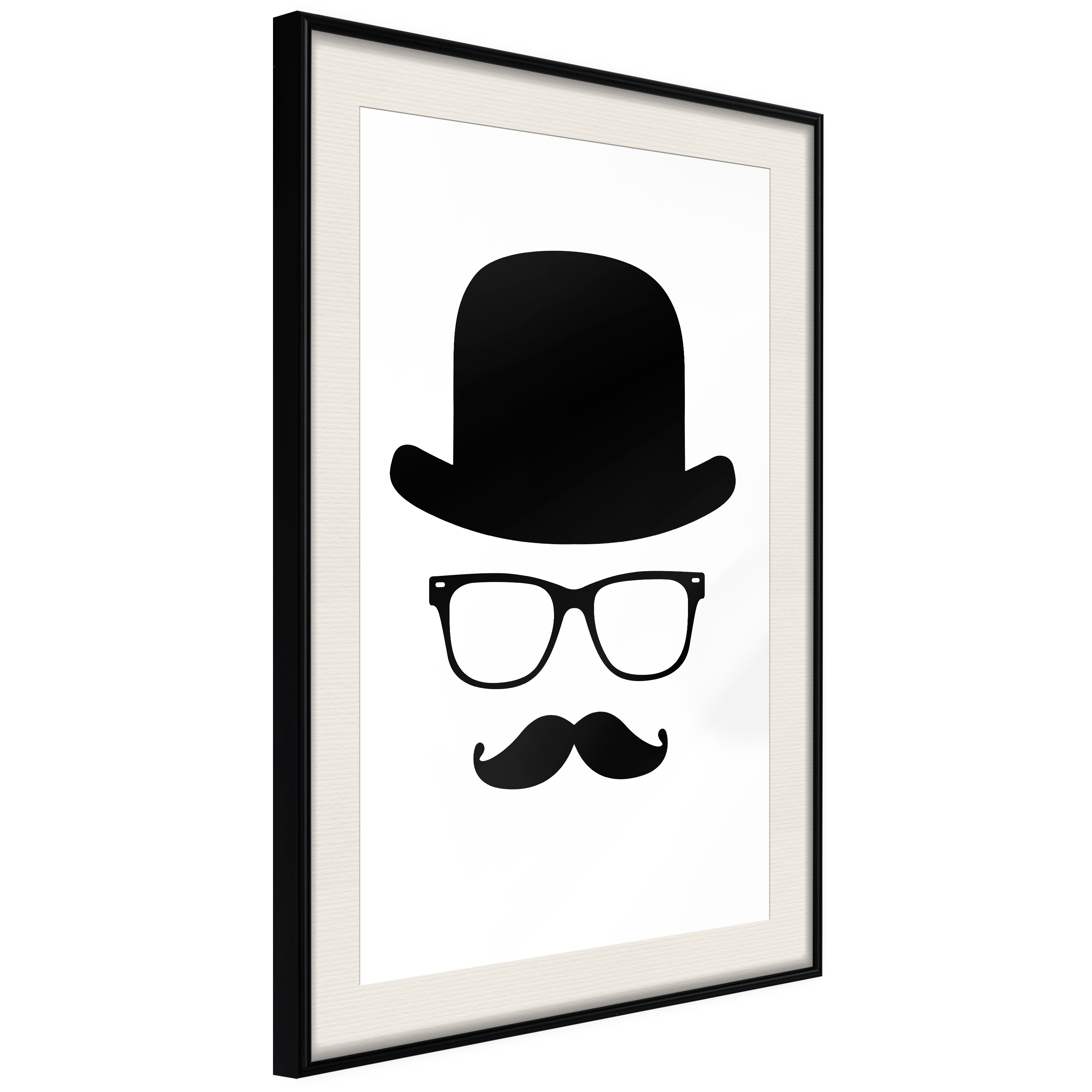 Passepartouten i écru betonar färgern på affischen och skapar en extra kontrast mellan grafiken, ramen och väggen. Dessutom ger den ramen ett svagt tredimensionellt intryck och fungerar även som ett skyddslager som ytterligare skyddar afischen. Affischen är säkrad med akrylglas och en hänganordning finns på ramens baksida.