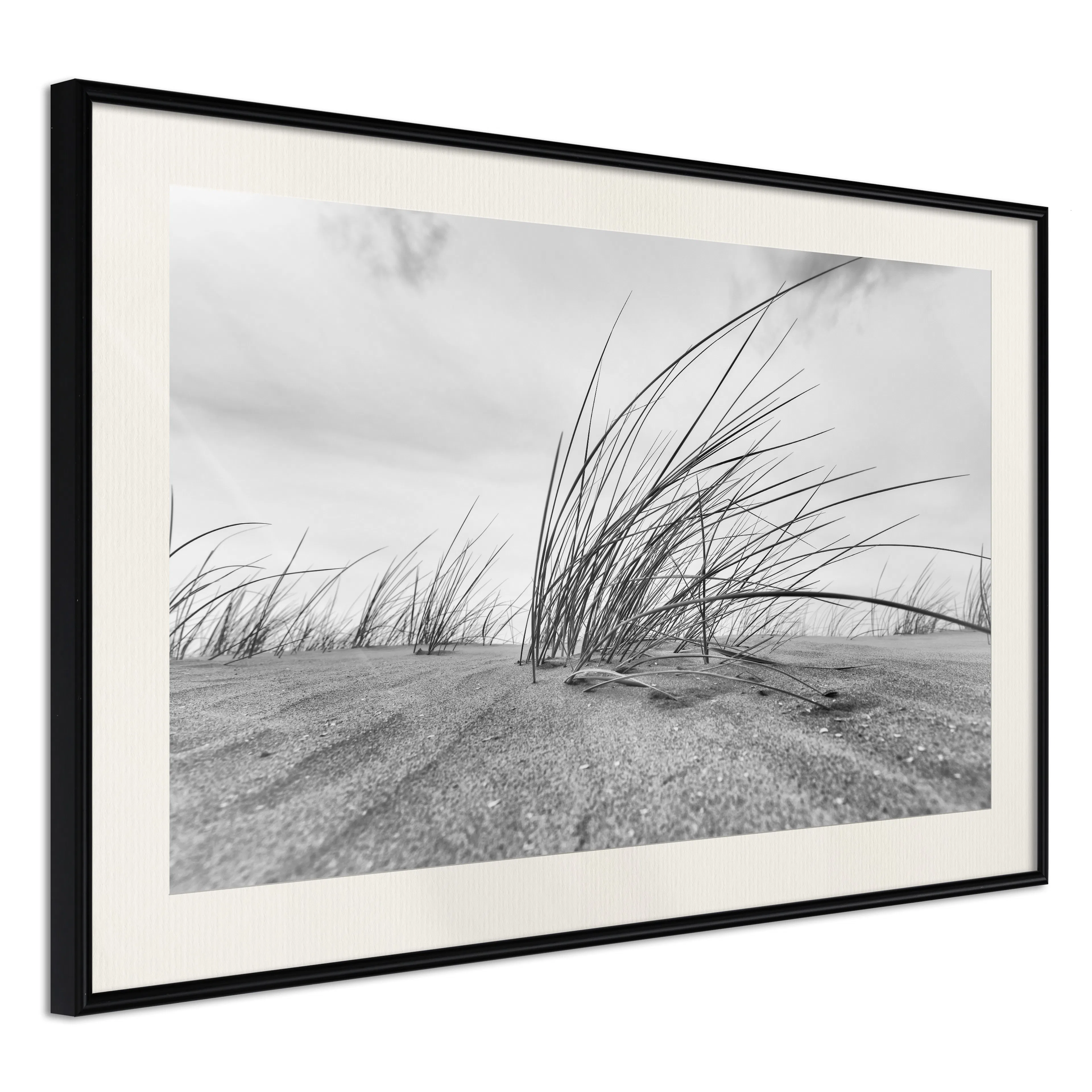 Passepartouten i écru betonar färgern på affischen och skapar en extra kontrast mellan grafiken, ramen och väggen. Dessutom ger den ramen ett svagt tredimensionellt intryck och fungerar även som ett skyddslager som ytterligare skyddar afischen. Affischen är säkrad med akrylglas och en hänganordning finns på ramens baksida.