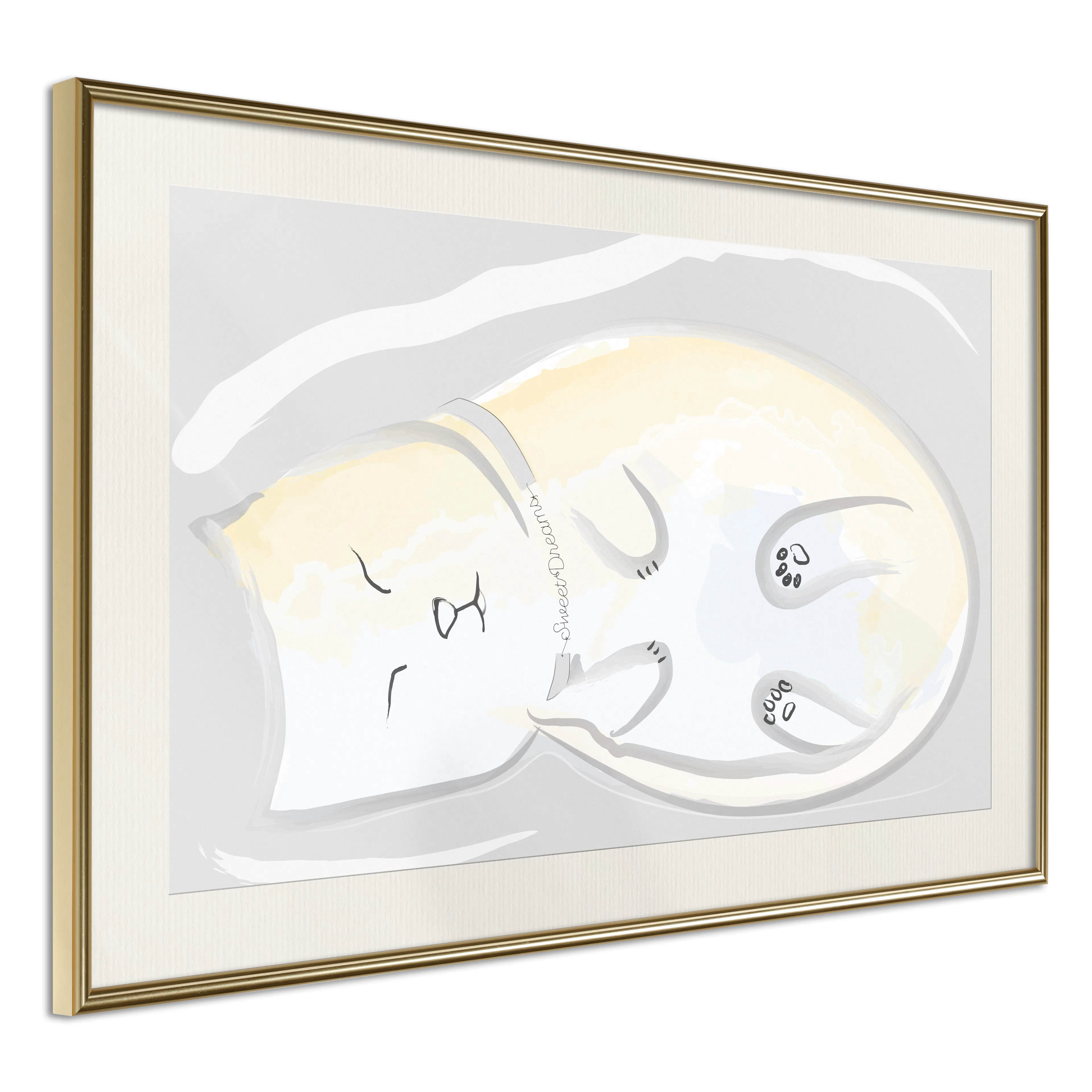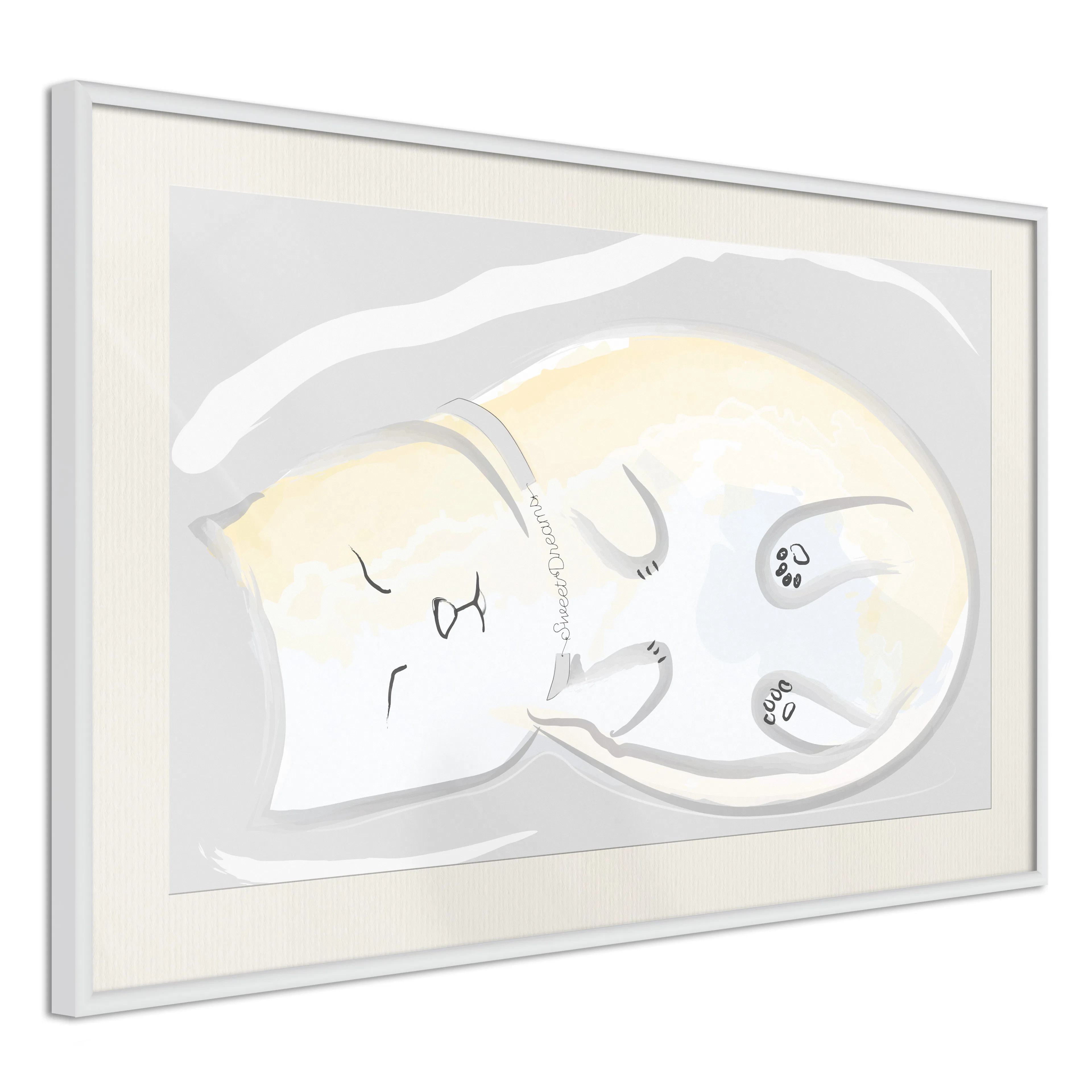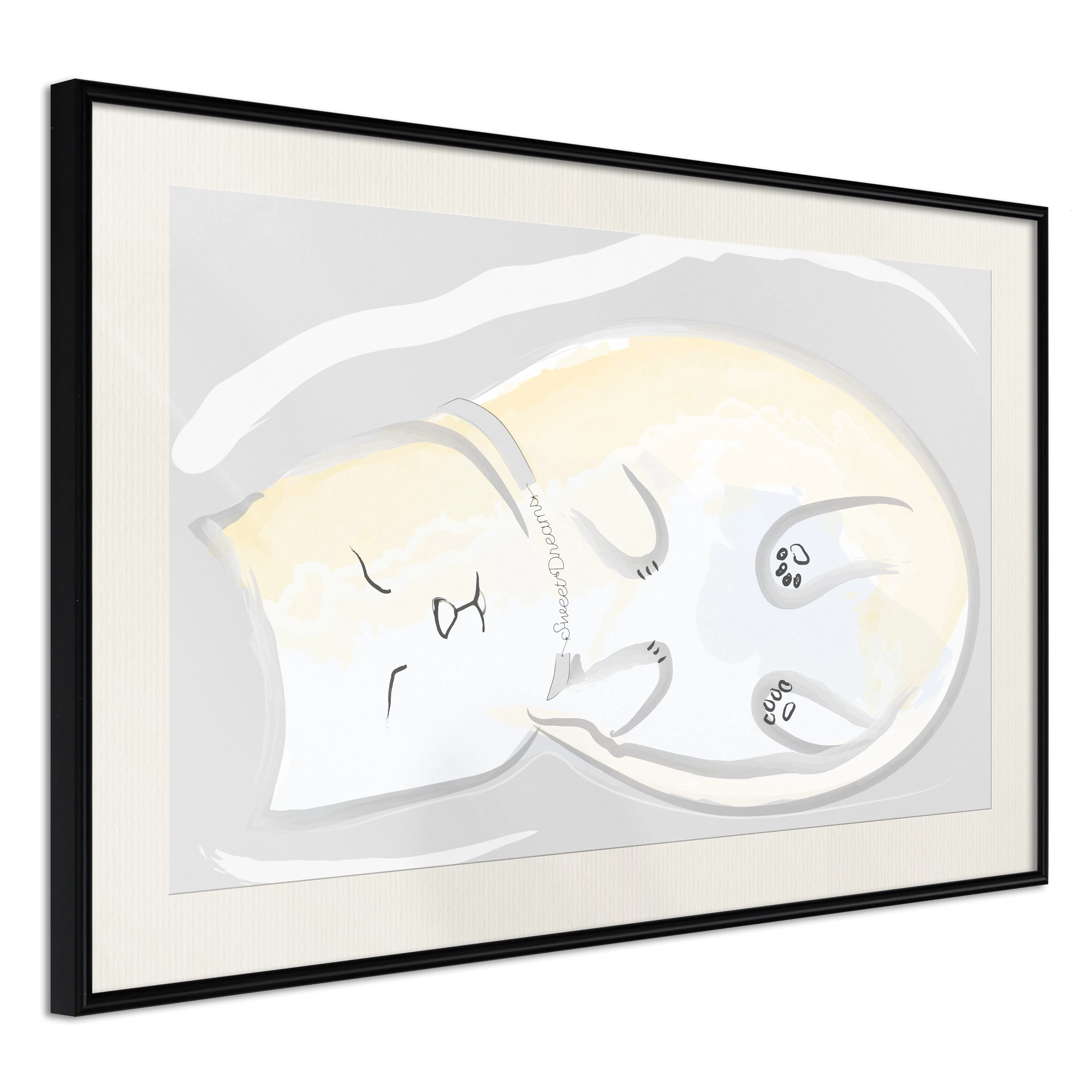 Passepartouten i écru betonar färgern på affischen och skapar en extra kontrast mellan grafiken, ramen och väggen. Dessutom ger den ramen ett svagt tredimensionellt intryck och fungerar även som ett skyddslager som ytterligare skyddar afischen. Affischen är säkrad med akrylglas och en hänganordning finns på ramens baksida.