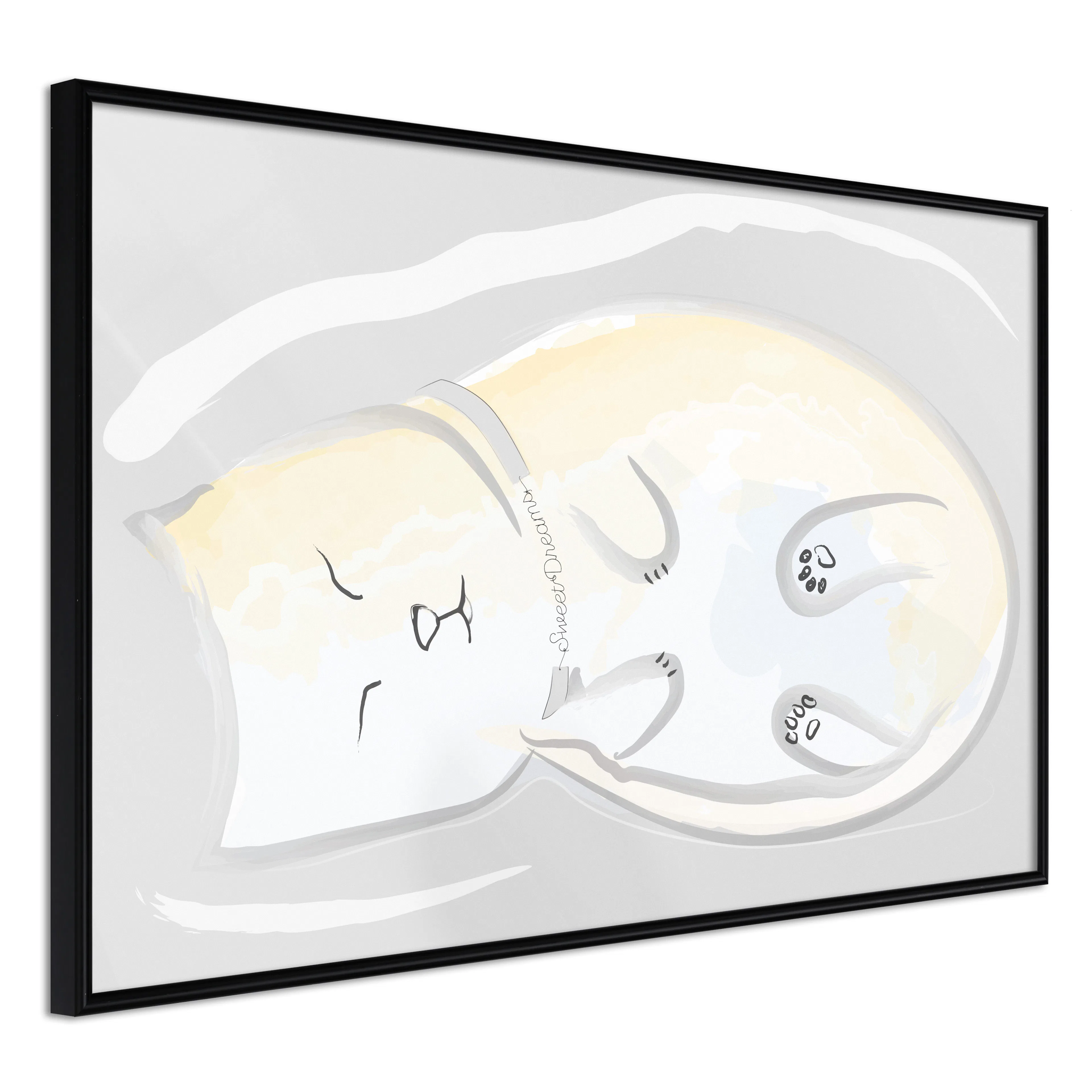 Affischen är inramad i en minimalistisk, lätt ram som gör den mer synlig mot väggen. Affischen är säkrad med akrylglas och en hänganordning finns på ramens baksida.