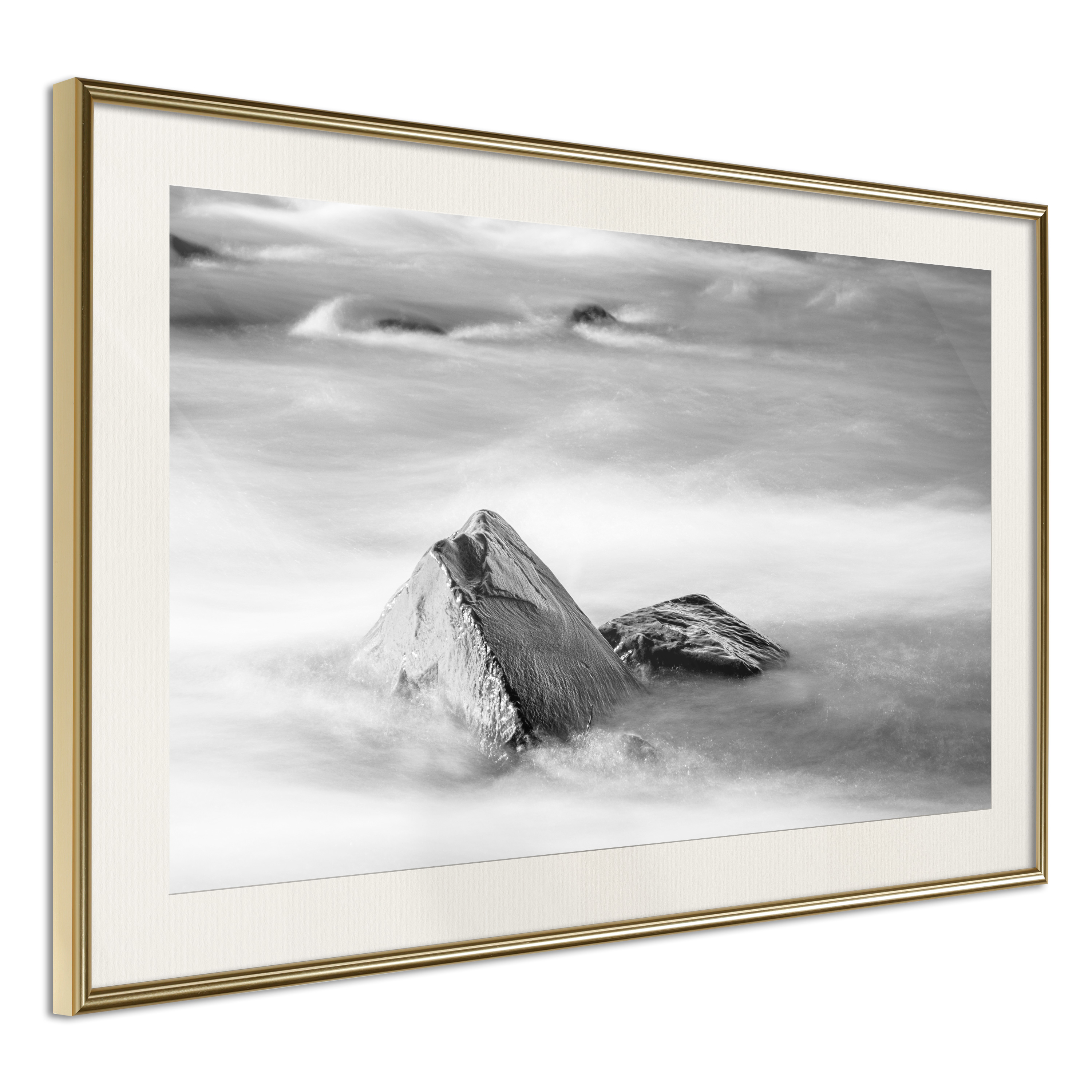 Passepartouten i écru betonar färgern på affischen och skapar en extra kontrast mellan grafiken, ramen och väggen. Dessutom ger den ramen ett svagt tredimensionellt intryck och fungerar även som ett skyddslager som ytterligare skyddar afischen. Affischen är säkrad med akrylglas och en hänganordning finns på ramens baksida.
