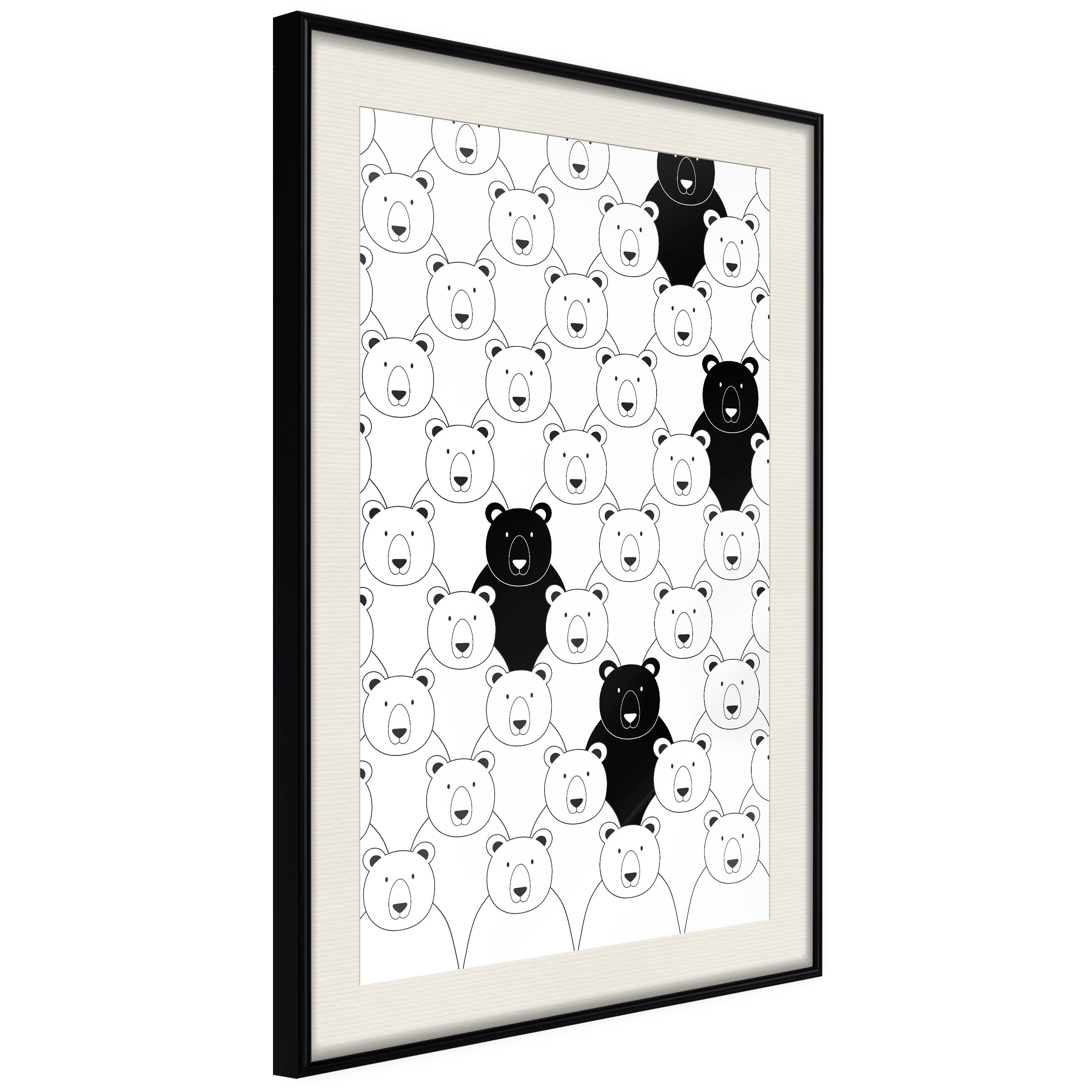 Passepartouten i écru betonar färgern på affischen och skapar en extra kontrast mellan grafiken, ramen och väggen. Dessutom ger den ramen ett svagt tredimensionellt intryck och fungerar även som ett skyddslager som ytterligare skyddar afischen. Affischen är säkrad med akrylglas och en hänganordning finns på ramens baksida.