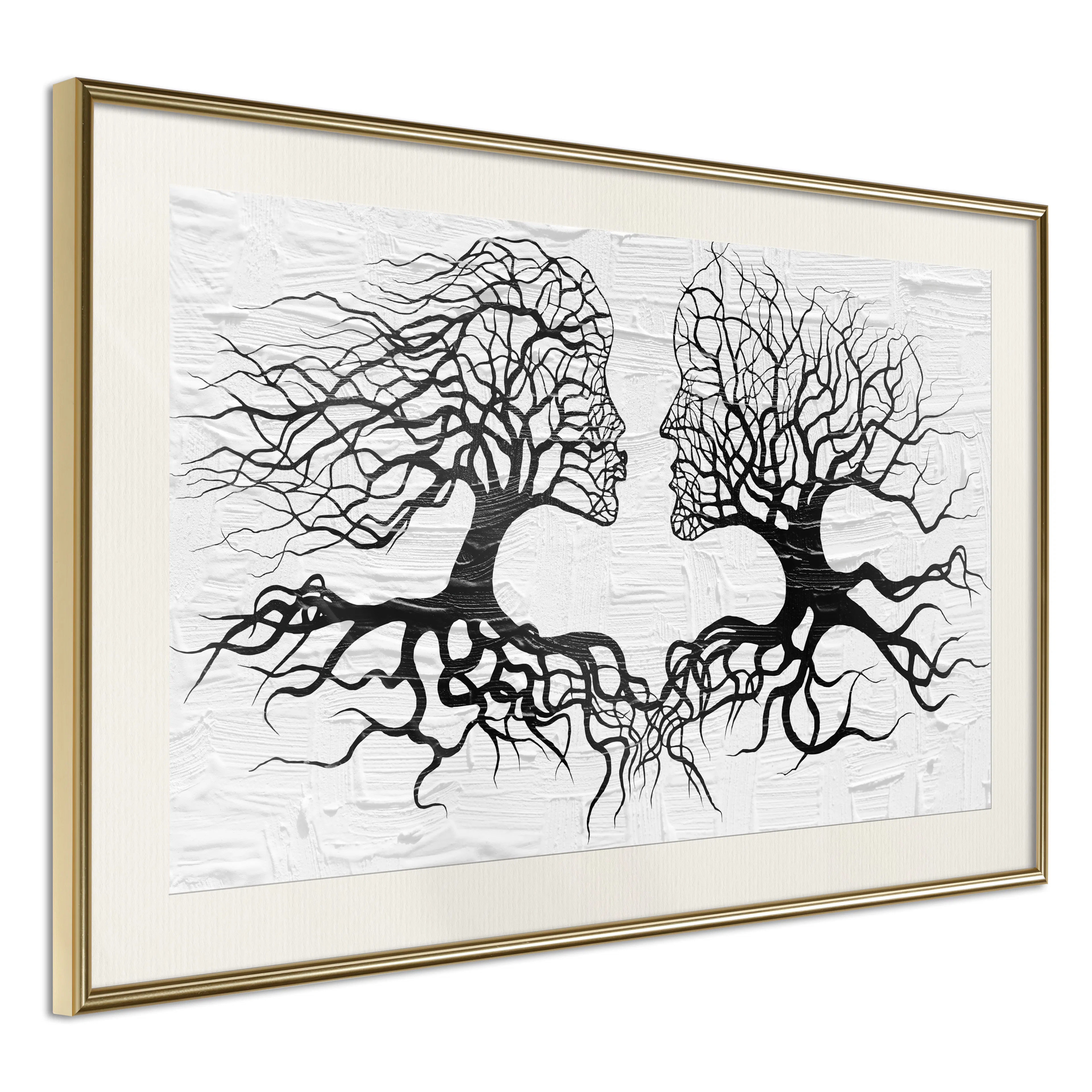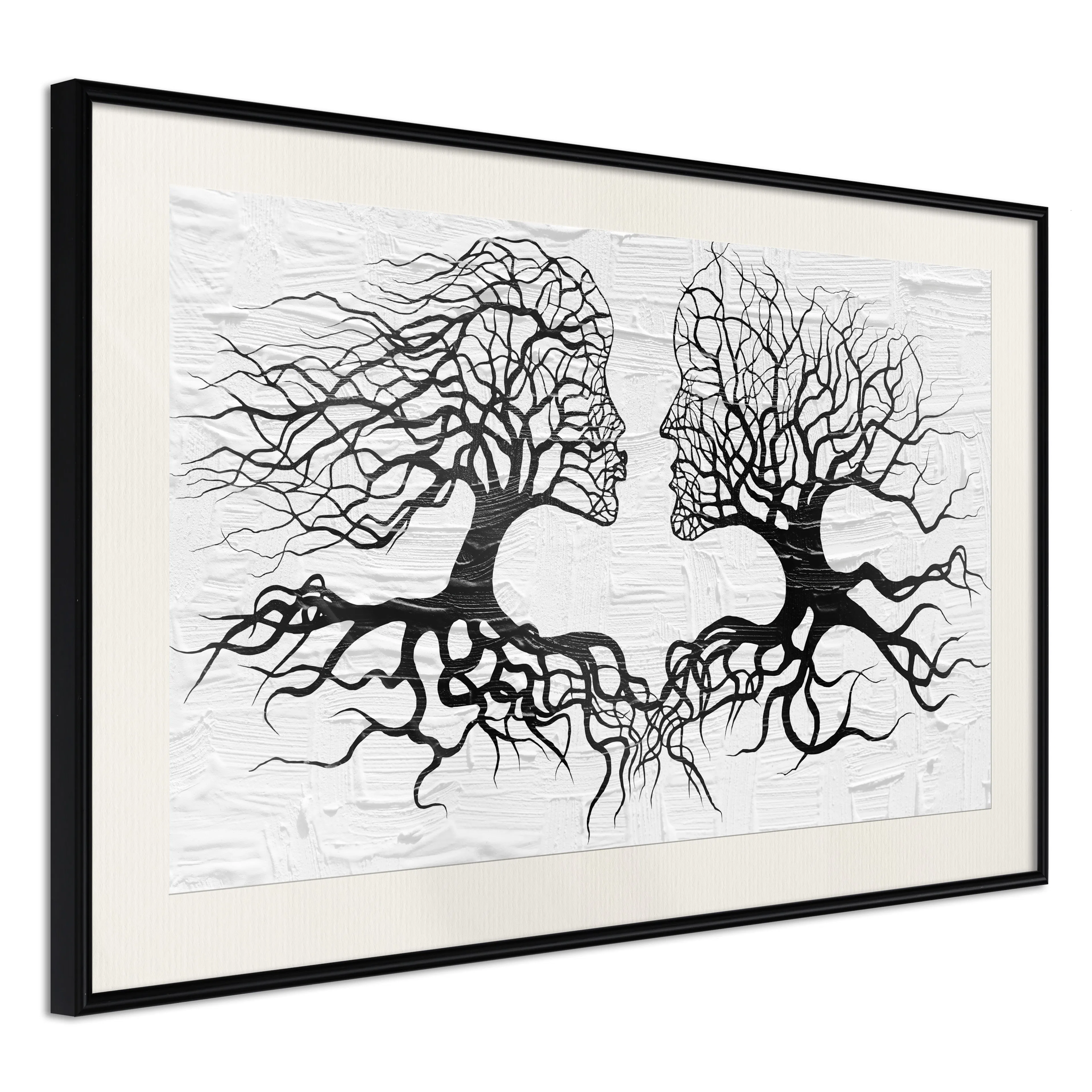 Passepartouten i écru betonar färgern på affischen och skapar en extra kontrast mellan grafiken, ramen och väggen. Dessutom ger den ramen ett svagt tredimensionellt intryck och fungerar även som ett skyddslager som ytterligare skyddar afischen. Affischen är säkrad med akrylglas och en hänganordning finns på ramens baksida.