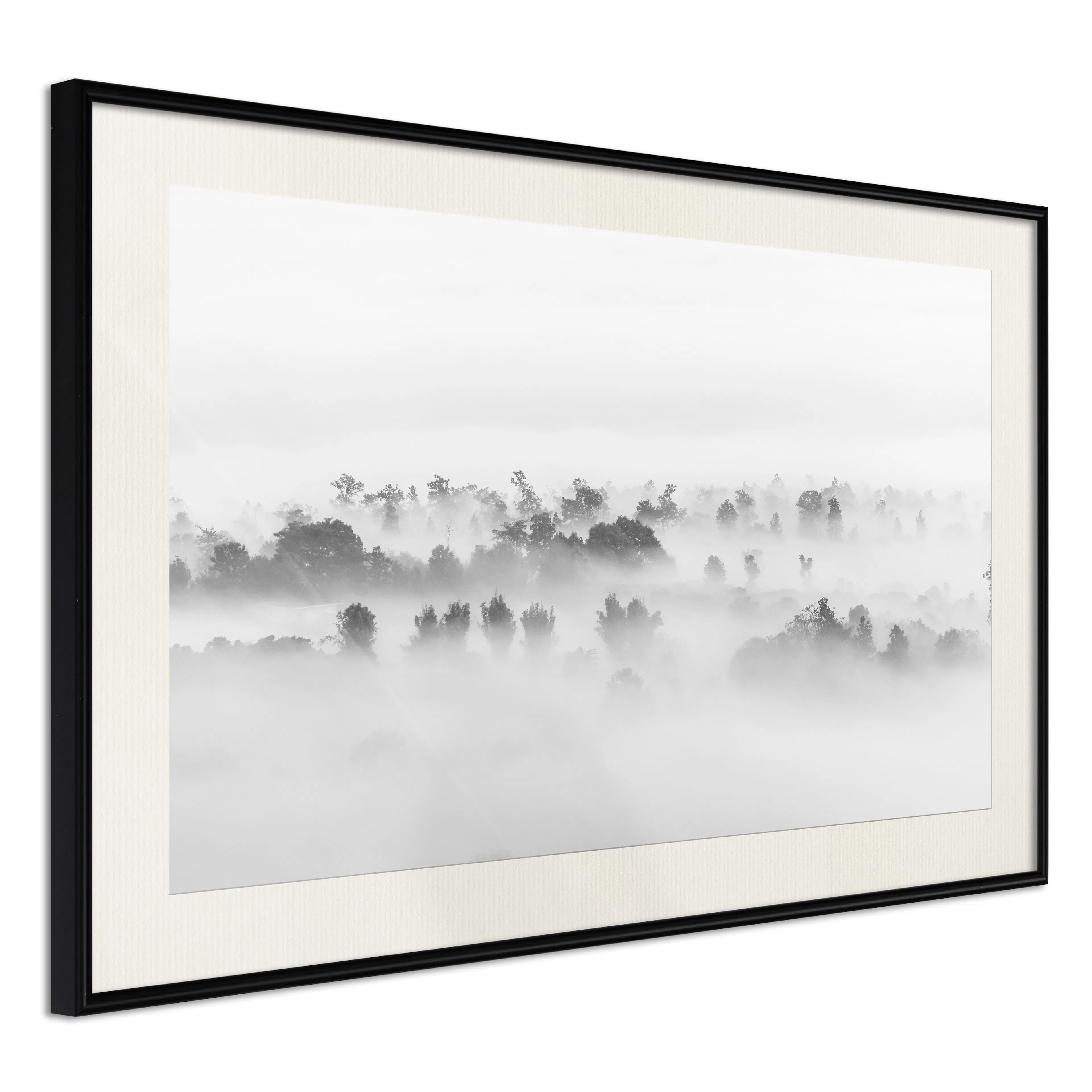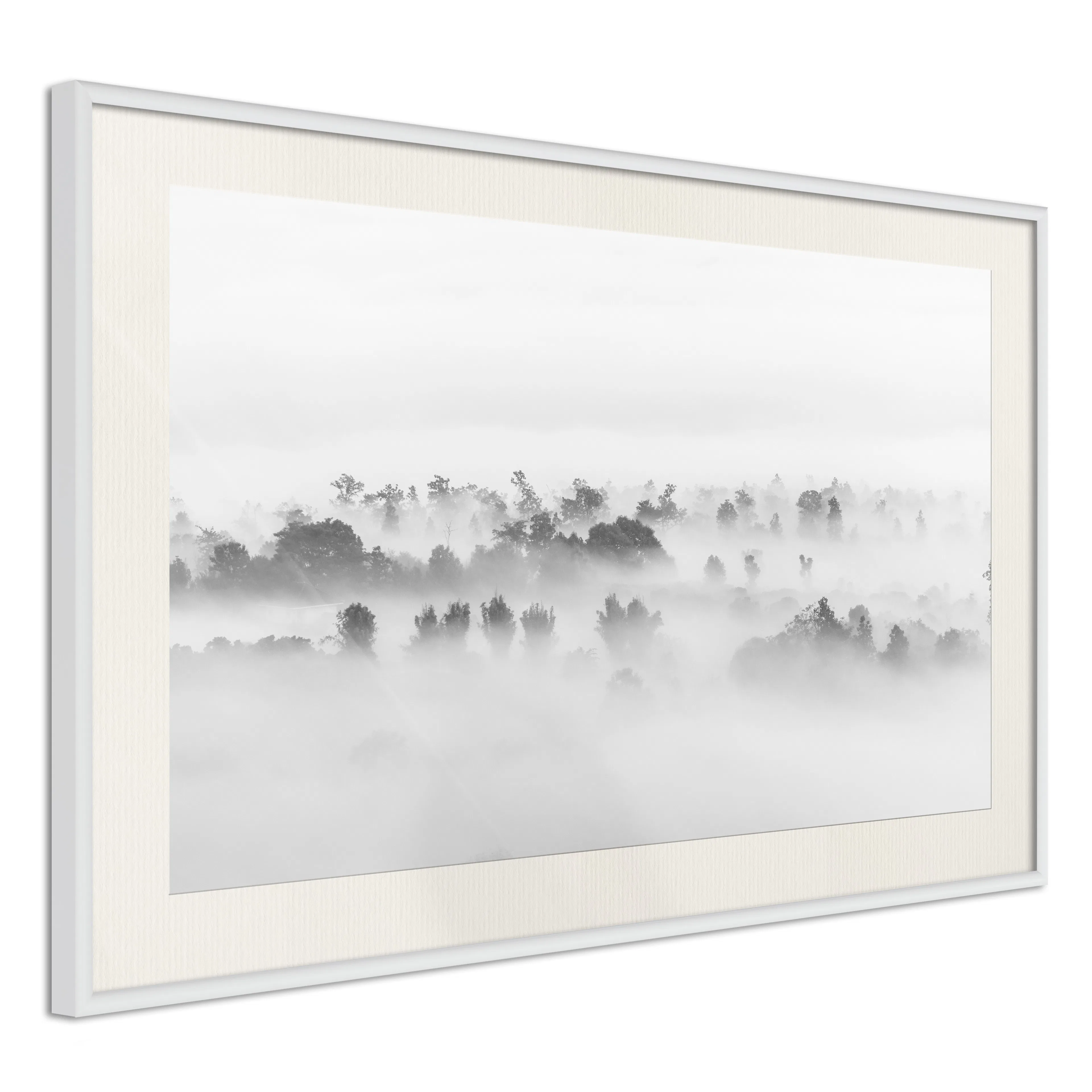 Passepartouten i écru betonar färgern på affischen och skapar en extra kontrast mellan grafiken, ramen och väggen. Dessutom ger den ramen ett svagt tredimensionellt intryck och fungerar även som ett skyddslager som ytterligare skyddar afischen. Affischen är säkrad med akrylglas och en hänganordning finns på ramens baksida.