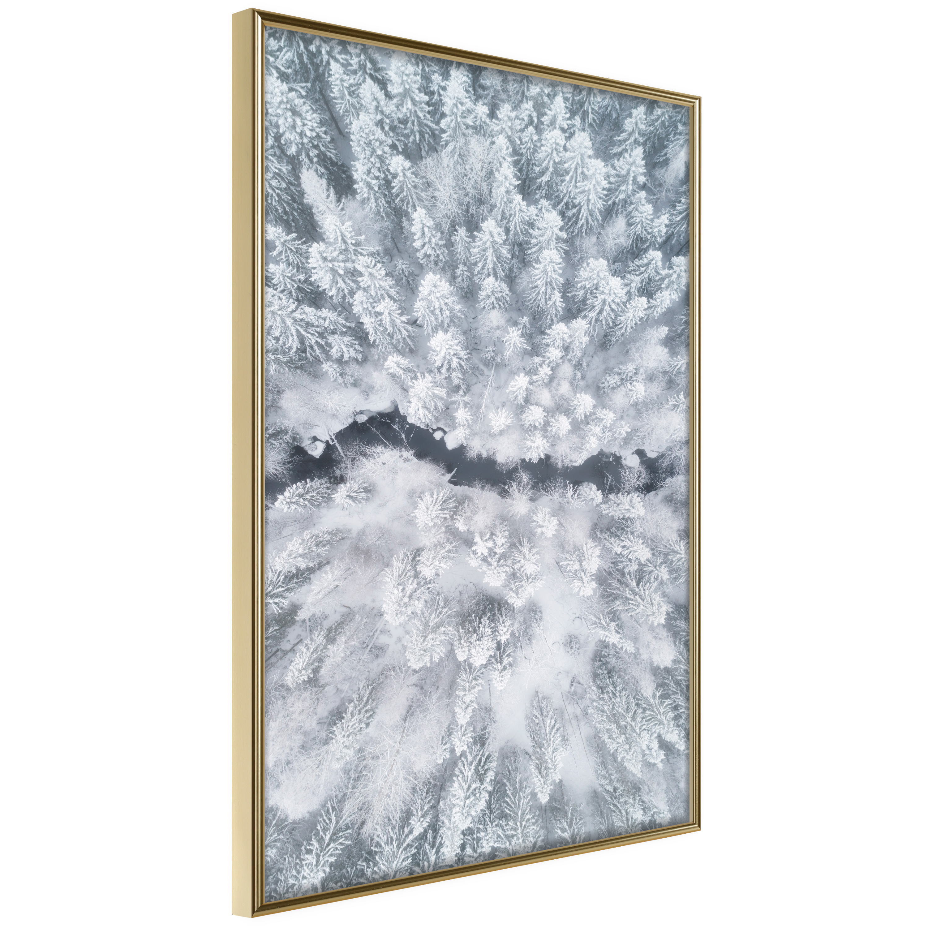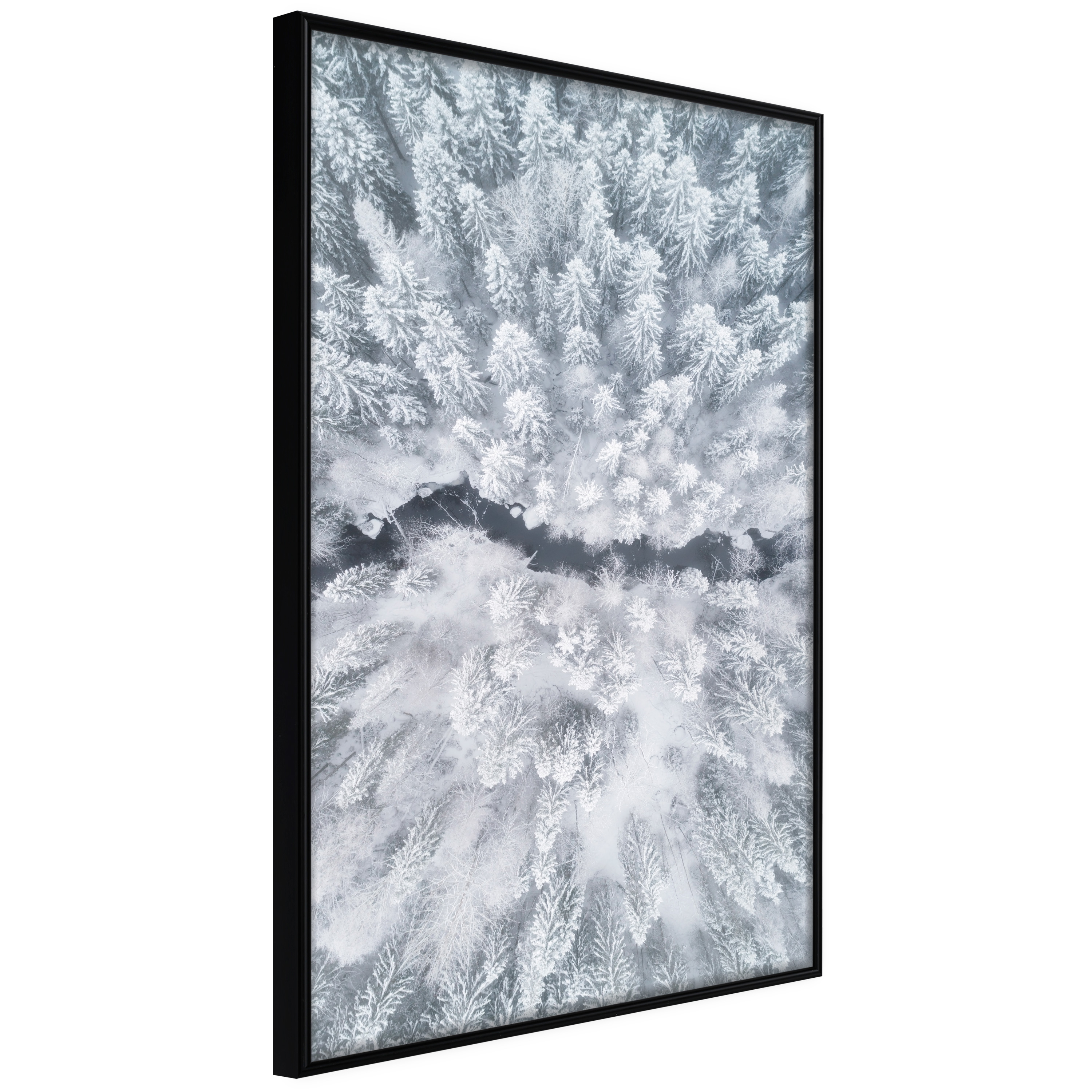 Affischen är inramad i en minimalistisk, lätt ram som gör den mer synlig mot väggen. Affischen är säkrad med akrylglas och en hänganordning finns på ramens baksida.