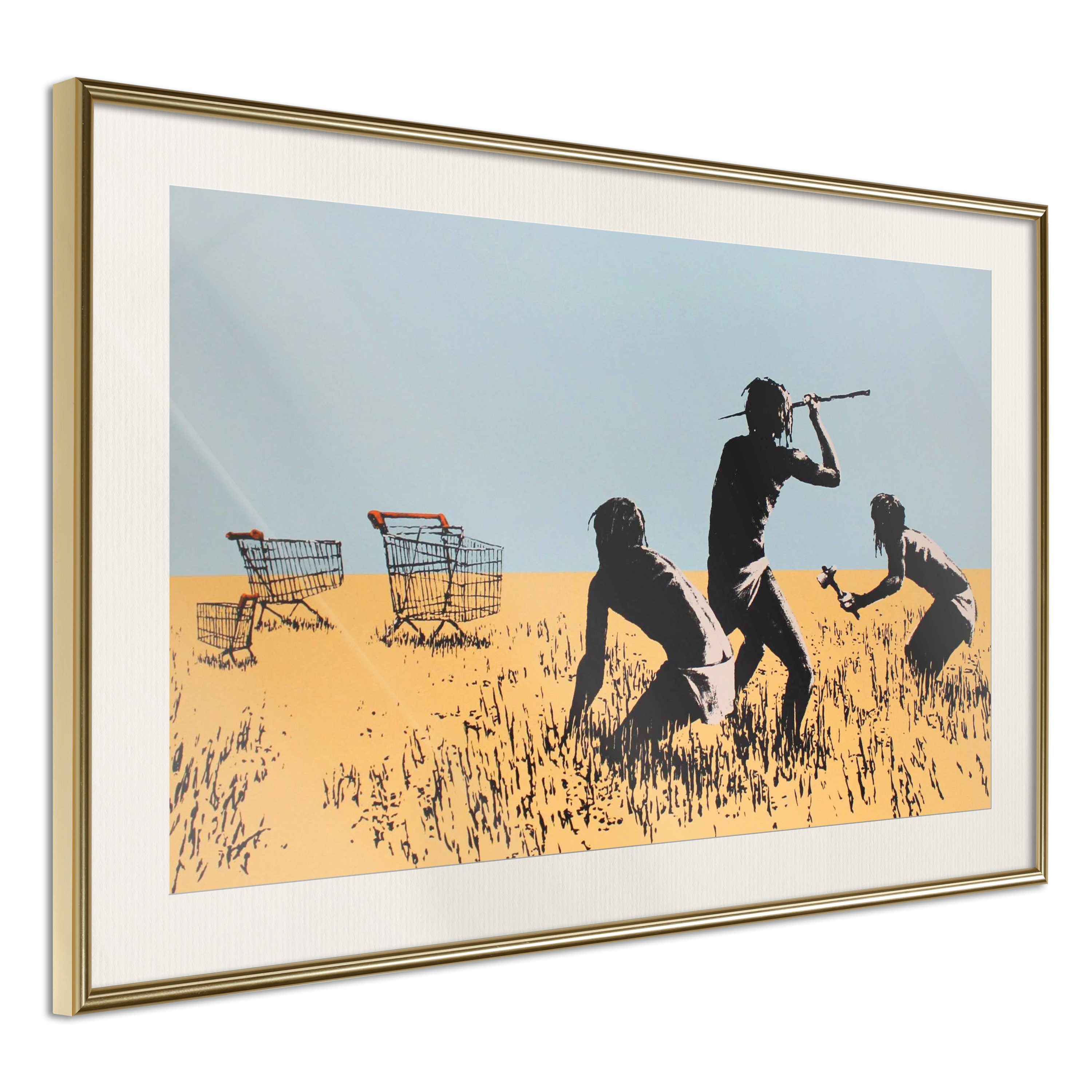 Passepartouten i écru betonar färgern på affischen och skapar en extra kontrast mellan grafiken, ramen och väggen. Dessutom ger den ramen ett svagt tredimensionellt intryck och fungerar även som ett skyddslager som ytterligare skyddar afischen. Affischen är säkrad med akrylglas och en hänganordning finns på ramens baksida.