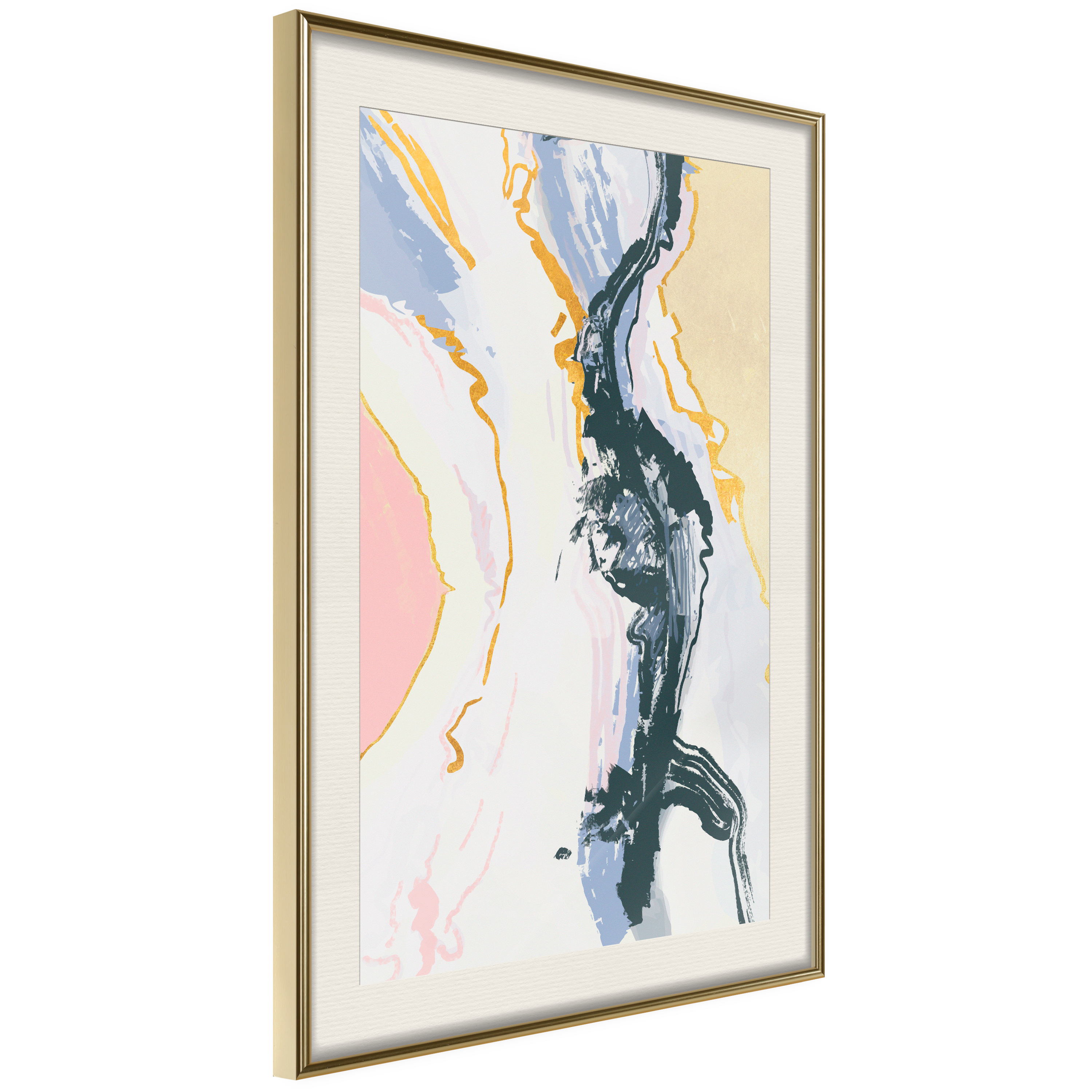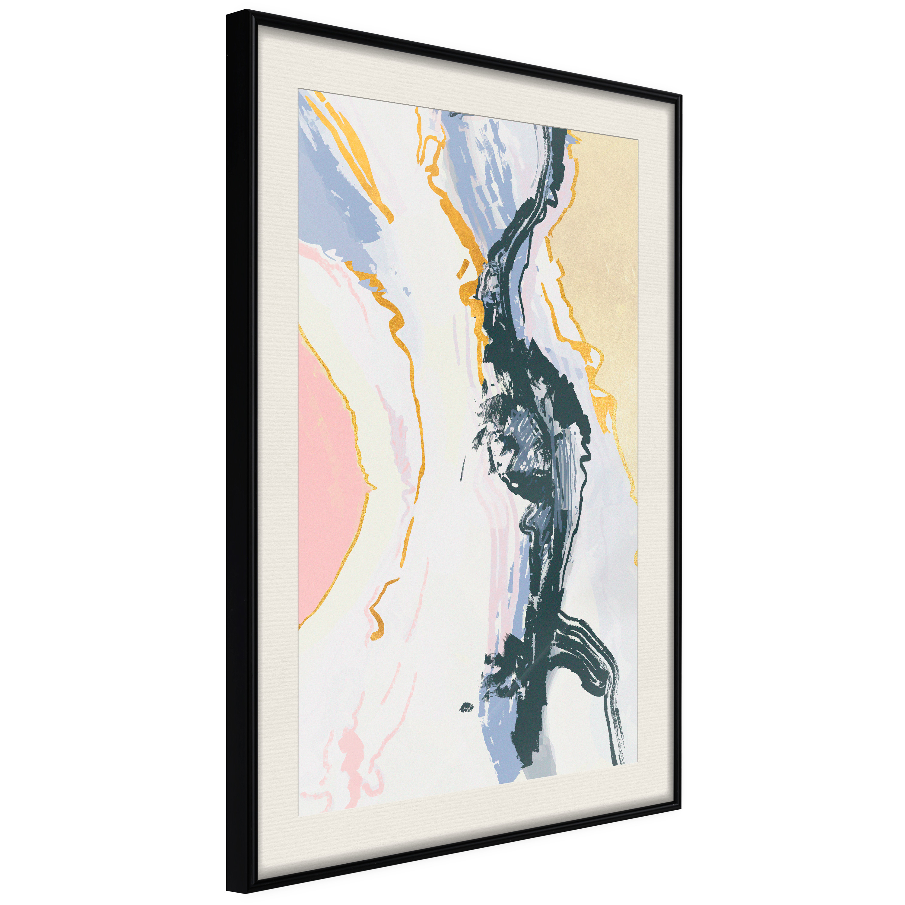 Passepartouten i écru betonar färgern på affischen och skapar en extra kontrast mellan grafiken, ramen och väggen. Dessutom ger den ramen ett svagt tredimensionellt intryck och fungerar även som ett skyddslager som ytterligare skyddar afischen. Affischen är säkrad med akrylglas och en hänganordning finns på ramens baksida.
