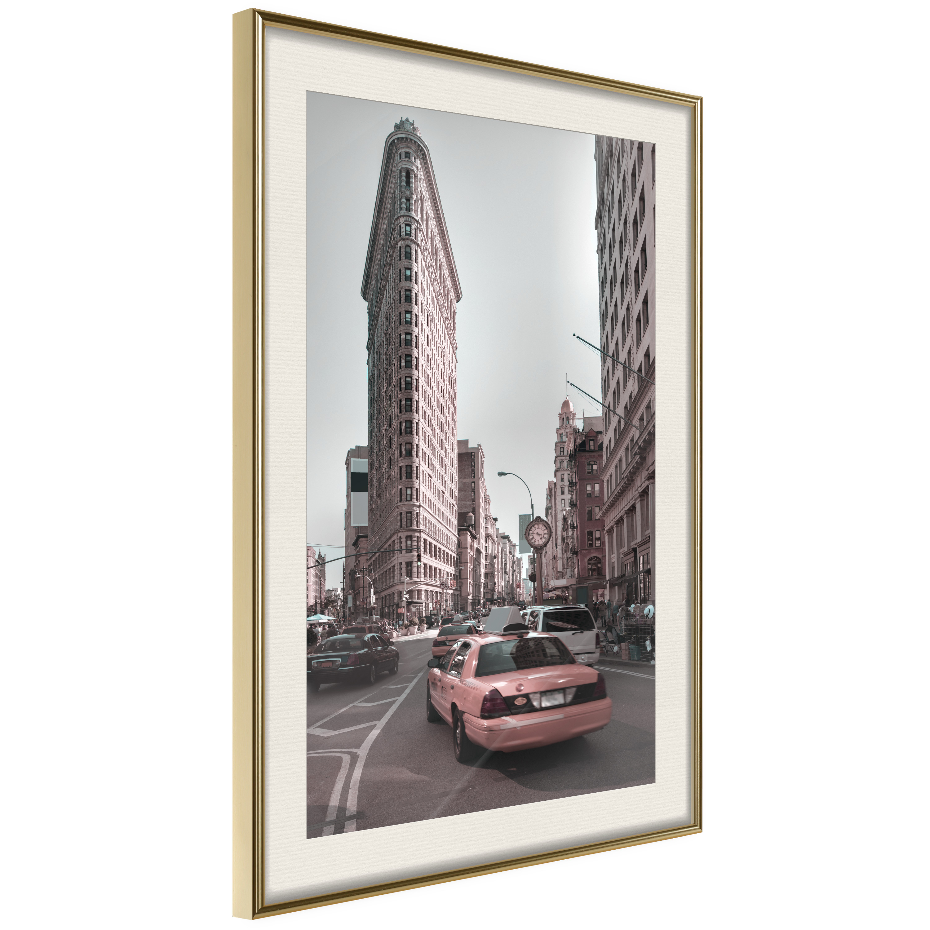 Passepartouten i écru betonar färgern på affischen och skapar en extra kontrast mellan grafiken, ramen och väggen. Dessutom ger den ramen ett svagt tredimensionellt intryck och fungerar även som ett skyddslager som ytterligare skyddar afischen. Affischen är säkrad med akrylglas och en hänganordning finns på ramens baksida.