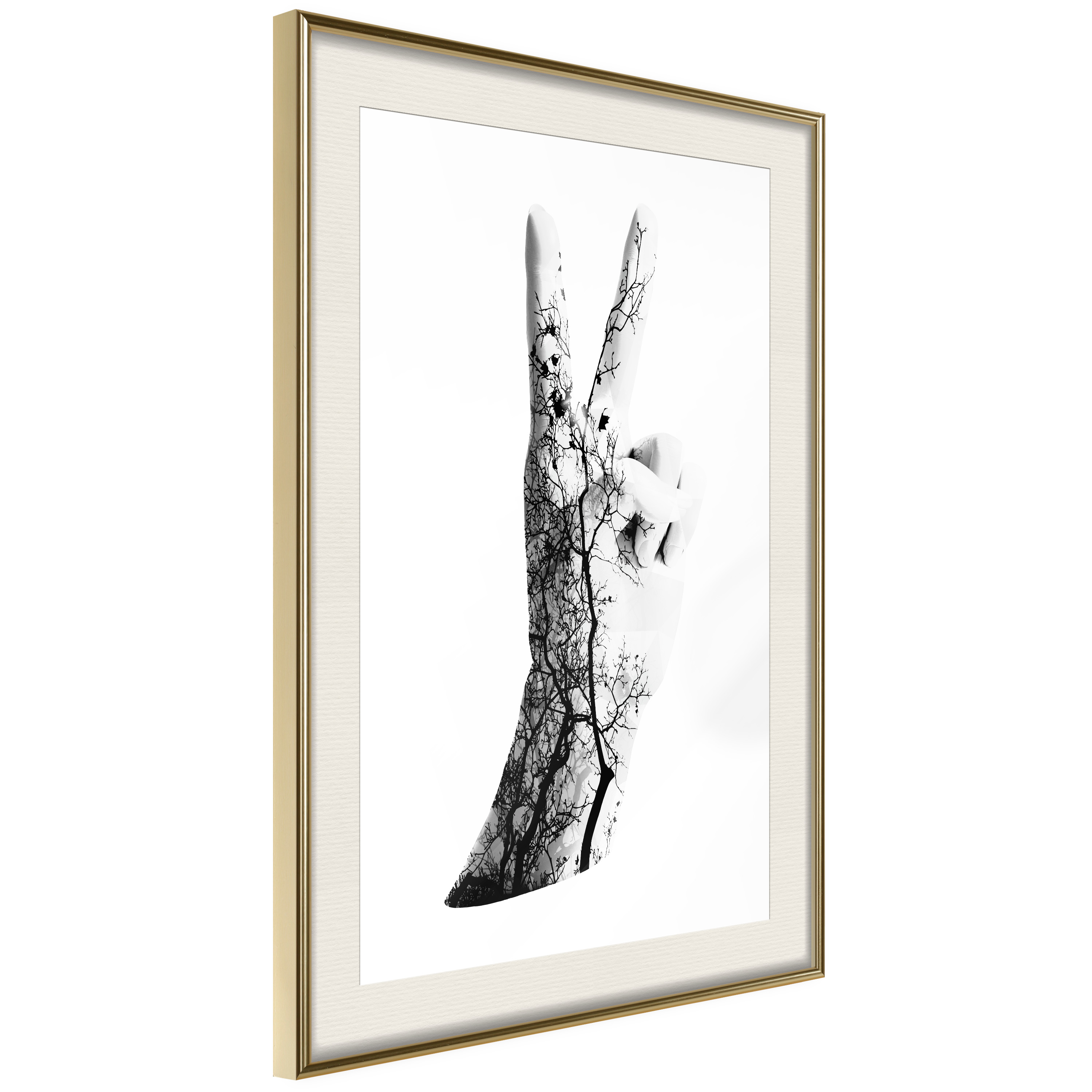 Passepartouten i écru betonar färgern på affischen och skapar en extra kontrast mellan grafiken, ramen och väggen. Dessutom ger den ramen ett svagt tredimensionellt intryck och fungerar även som ett skyddslager som ytterligare skyddar afischen. Affischen är säkrad med akrylglas och en hänganordning finns på ramens baksida.