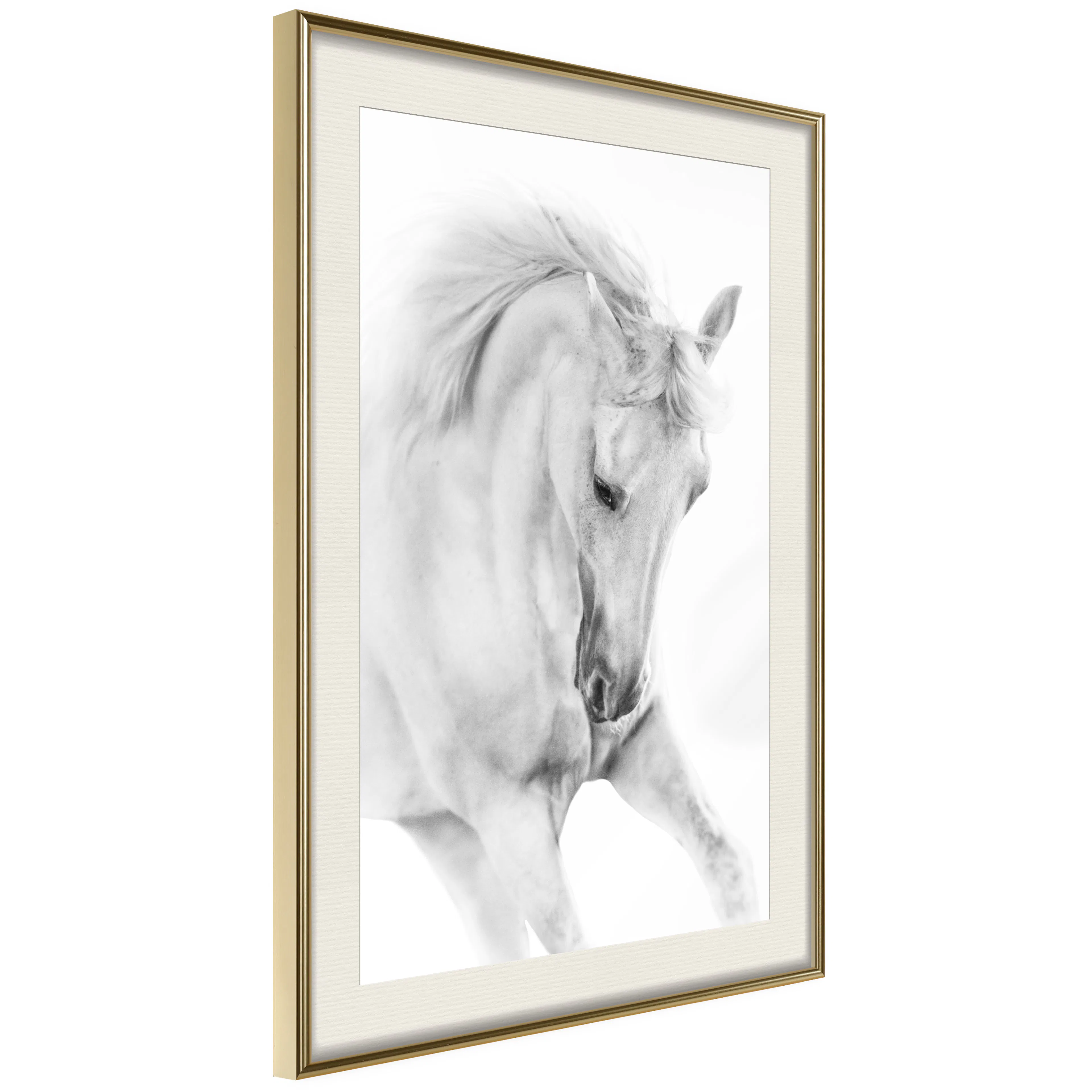 Passepartouten i écru betonar färgern på affischen och skapar en extra kontrast mellan grafiken, ramen och väggen. Dessutom ger den ramen ett svagt tredimensionellt intryck och fungerar även som ett skyddslager som ytterligare skyddar afischen. Affischen är säkrad med akrylglas och en hänganordning finns på ramens baksida.