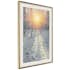 Passepartouten i écru betonar färgern på affischen och skapar en extra kontrast mellan grafiken, ramen och väggen. Dessutom ger den ramen ett svagt tredimensionellt intryck och fungerar även som ett skyddslager som ytterligare skyddar afischen. Affischen är säkrad med akrylglas och en hänganordning finns på ramens baksida.