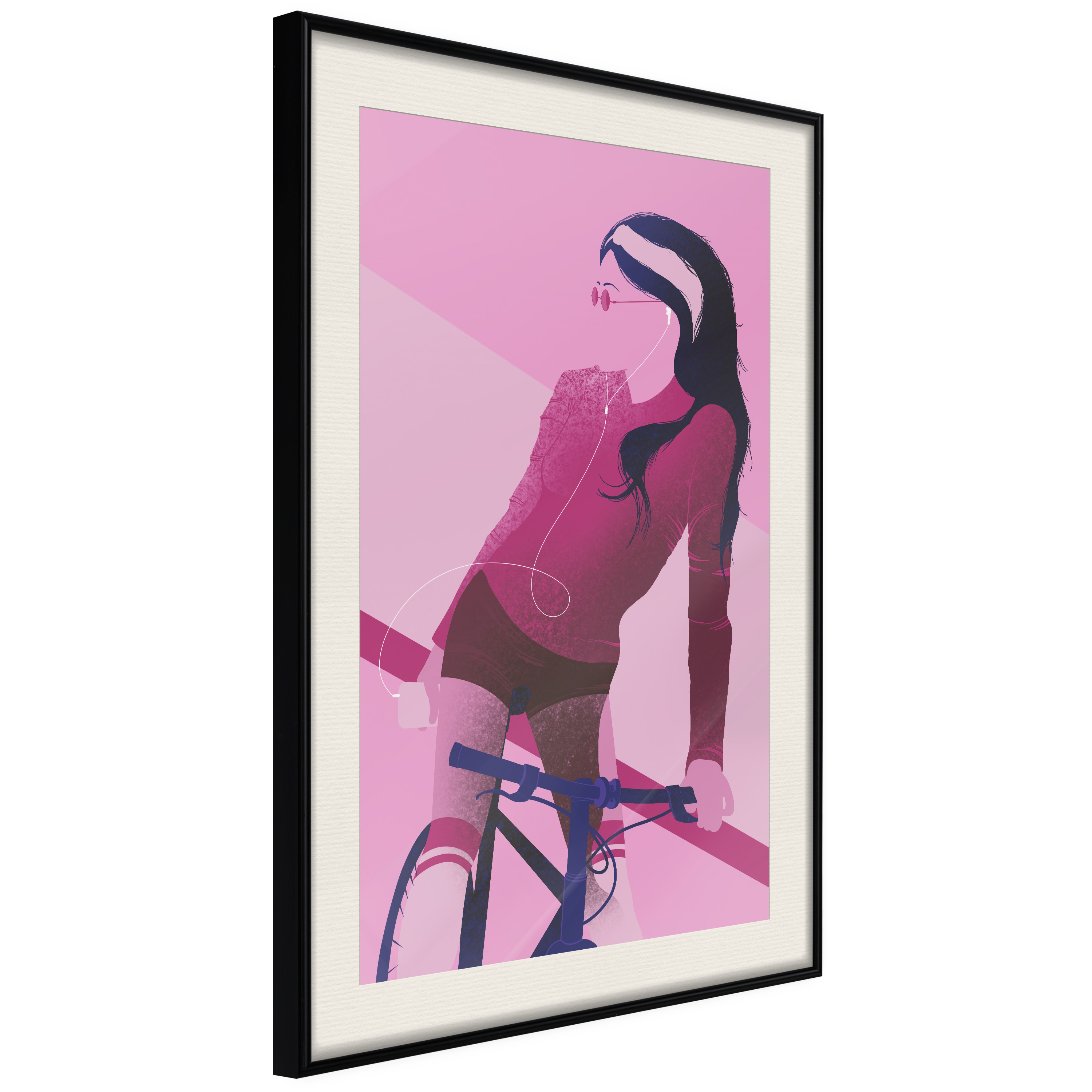 Passepartouten i écru betonar färgern på affischen och skapar en extra kontrast mellan grafiken, ramen och väggen. Dessutom ger den ramen ett svagt tredimensionellt intryck och fungerar även som ett skyddslager som ytterligare skyddar afischen. Affischen är säkrad med akrylglas och en hänganordning finns på ramens baksida.