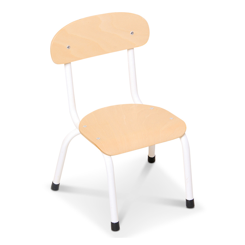 Barnstol Lotta från ABA Skol. En stabil och sittvänlig barnstol. Rygg och sits i lackerad bok på en stomme av pulverlackerade stålrör. Godkänd enligt gällande EN-standard. Stapelbar.