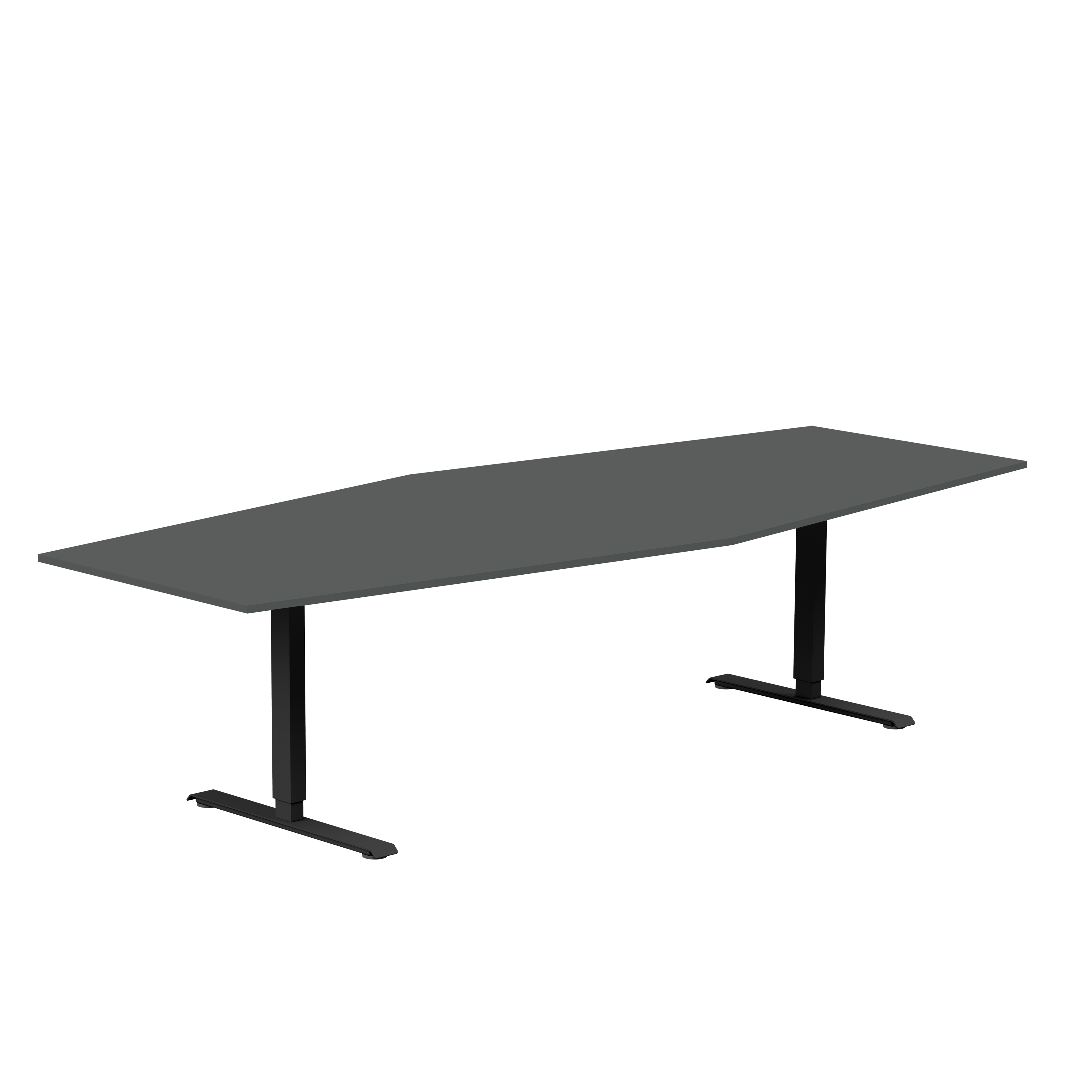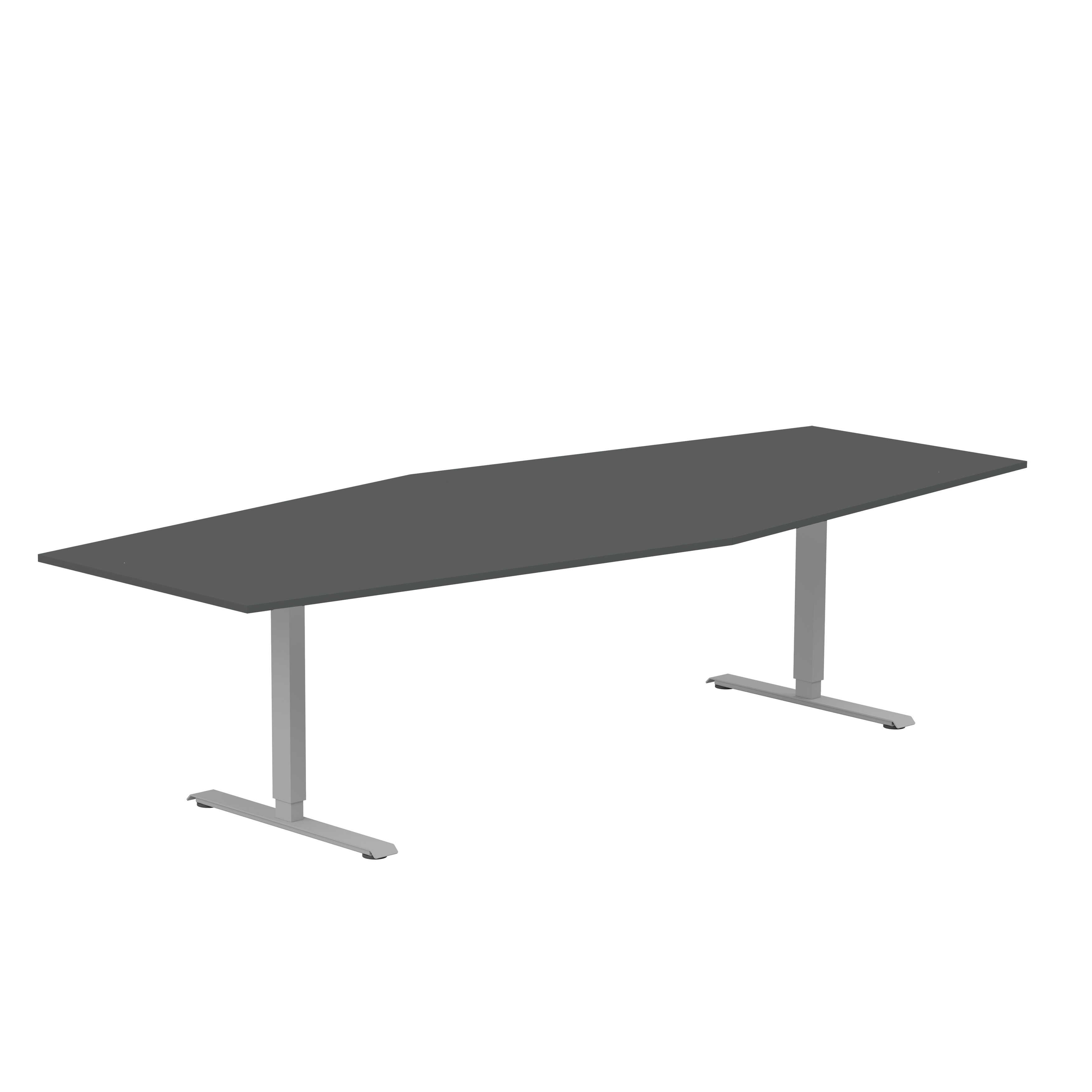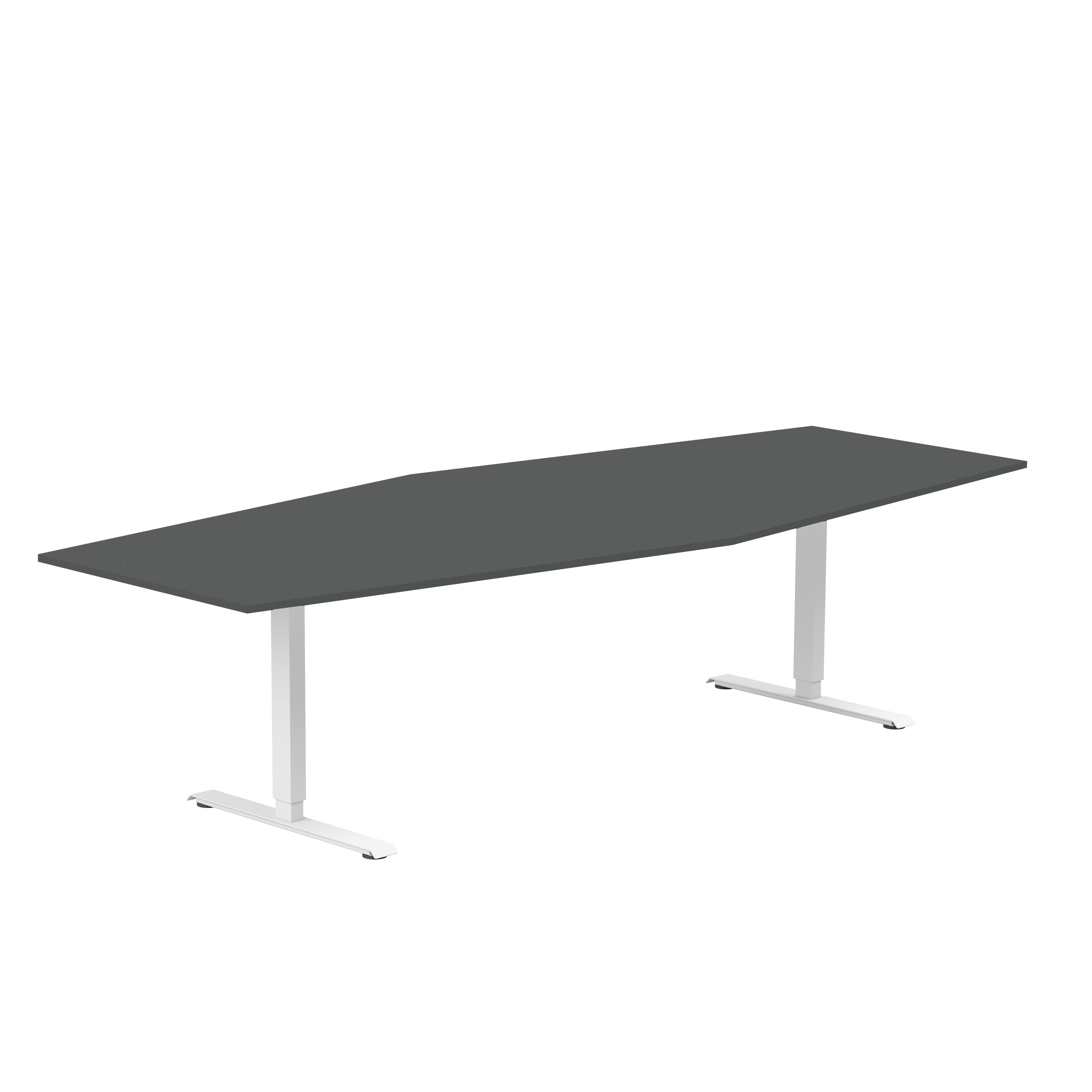 Båtformat konferensbord från Lanab Group för cirka 10 personer. Bordet har en stilren design med rektangulärt T-stativ och finns med flera sorters bordsskivor och i tre stativfärger. Bordshöjden kan ställas in manuellt så arbetshöjden kan justeras om det behövs.