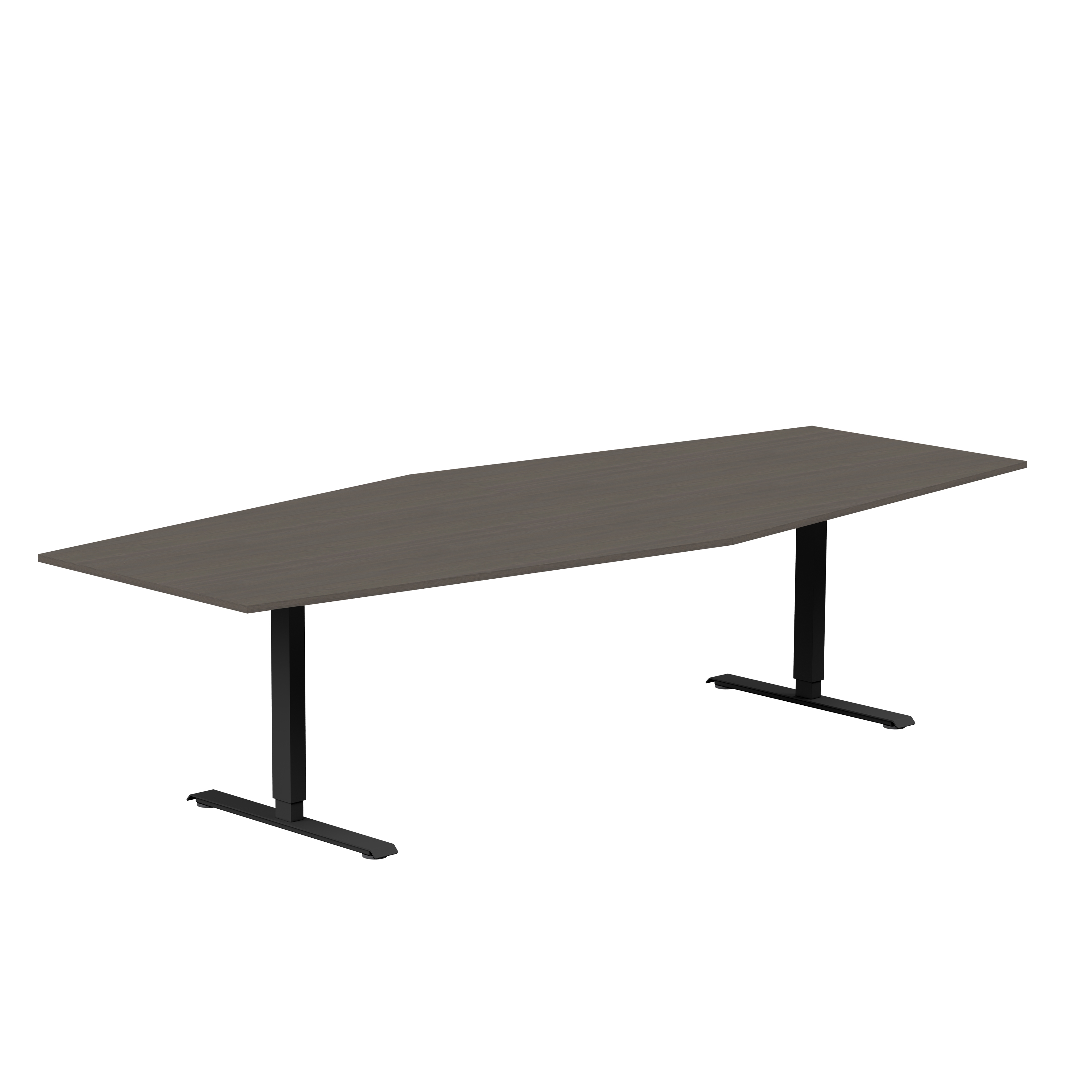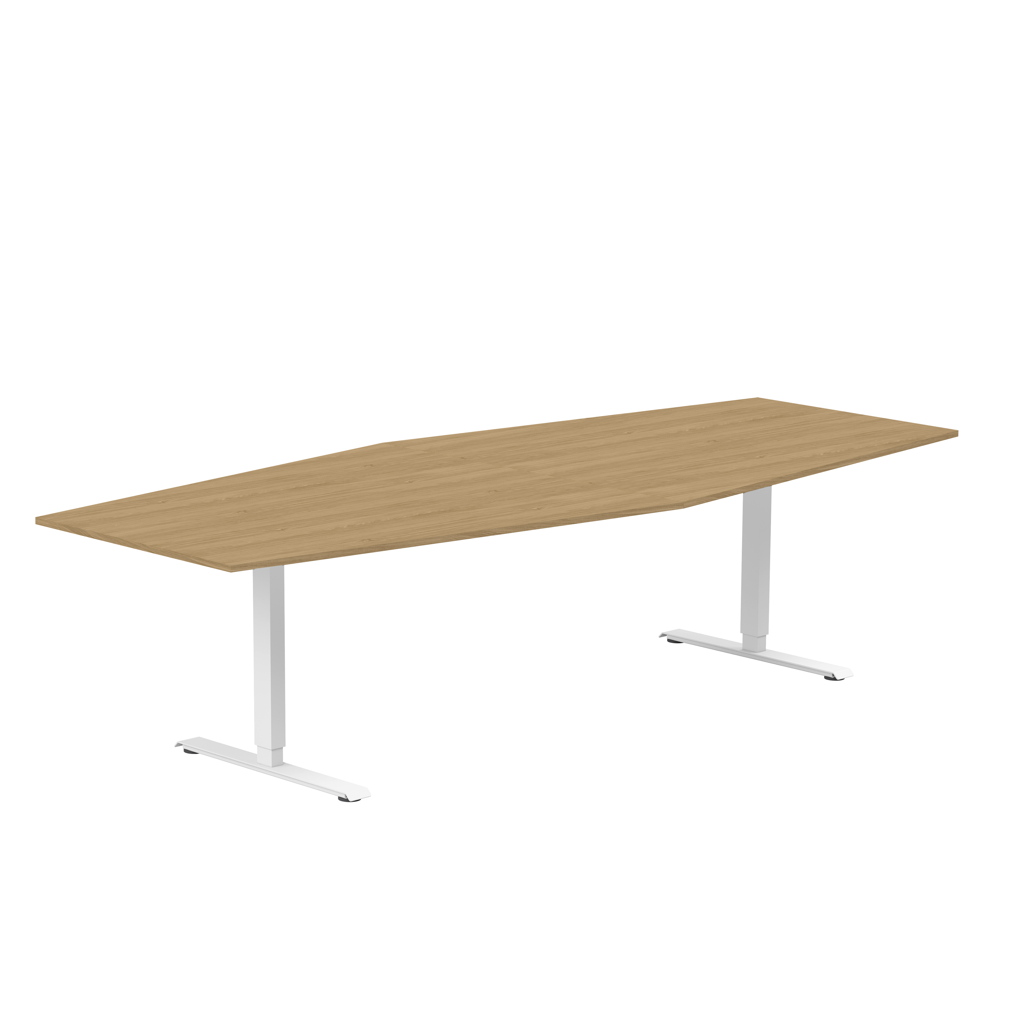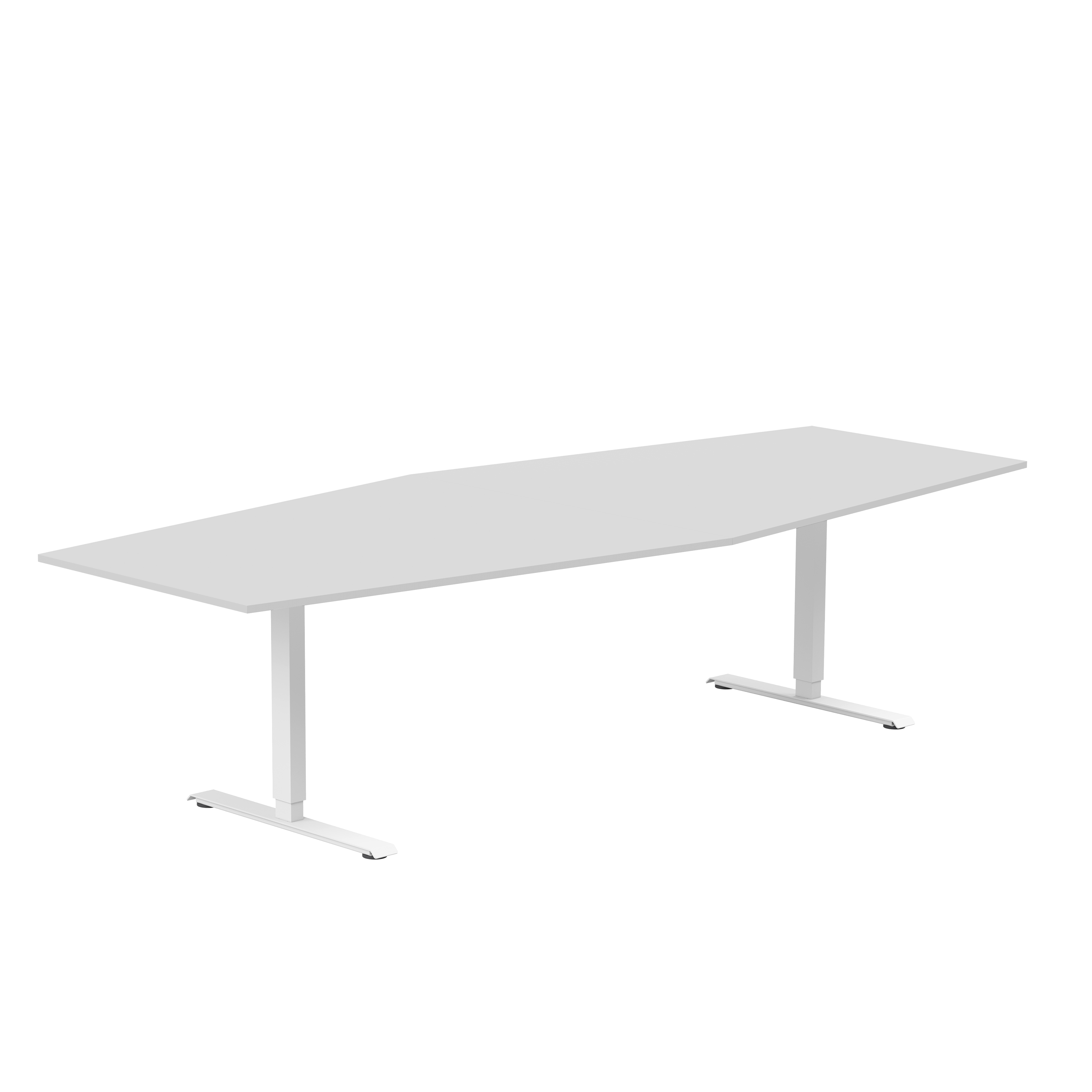 Båtformat konferensbord från Lanab Group för cirka 10 personer. Bordet har en stilren design med rektangulärt T-stativ och finns med flera sorters bordsskivor och i tre stativfärger. Bordshöjden kan ställas in manuellt så arbetshöjden kan justeras om det behövs.