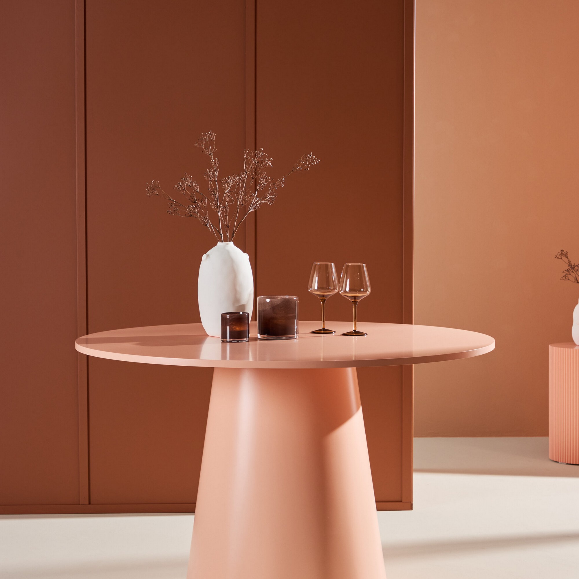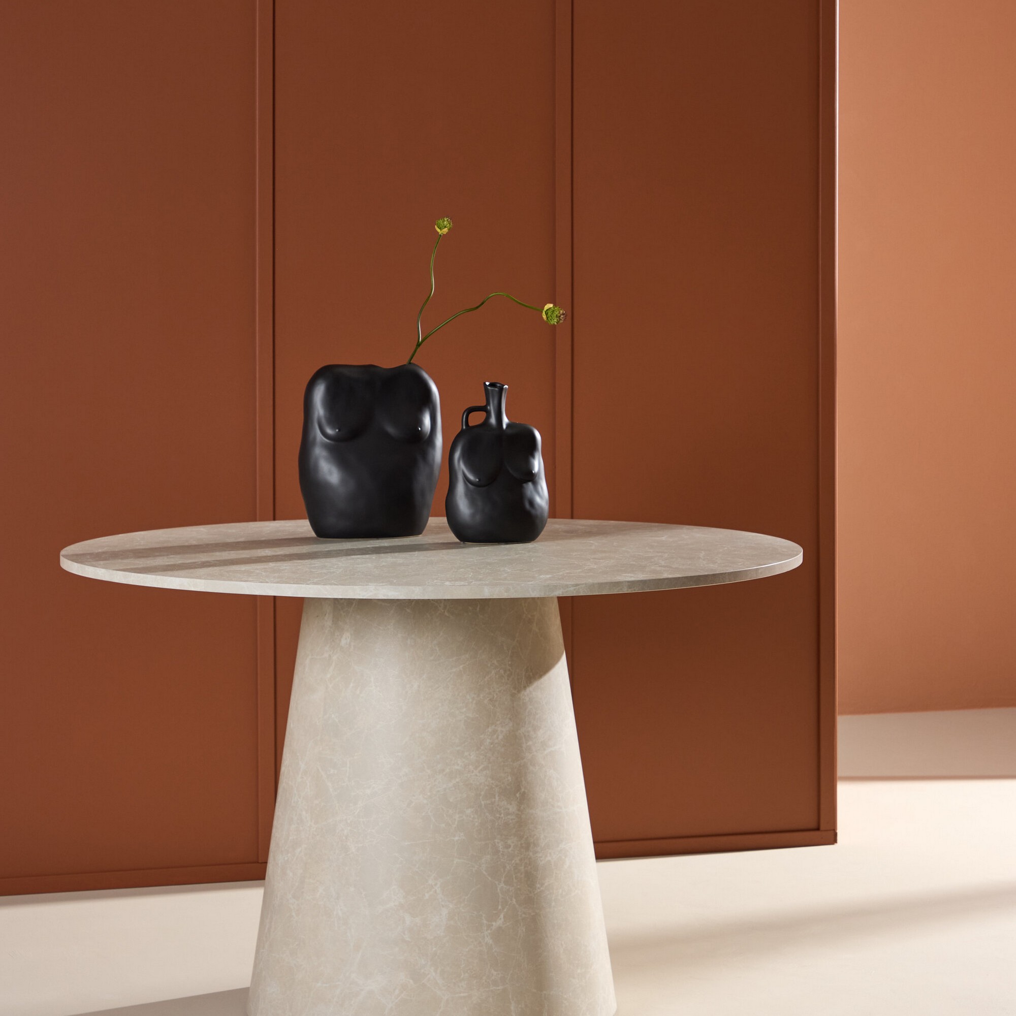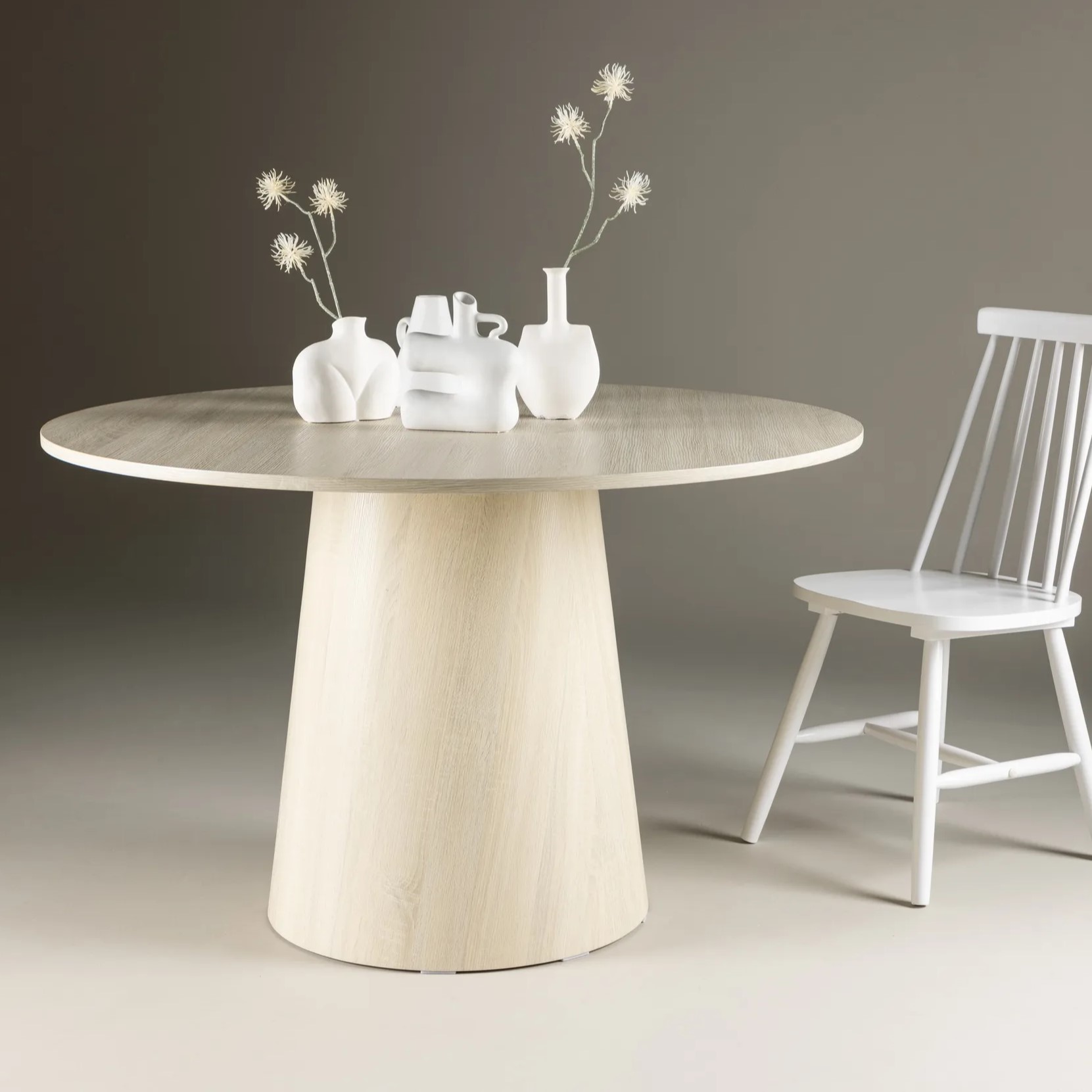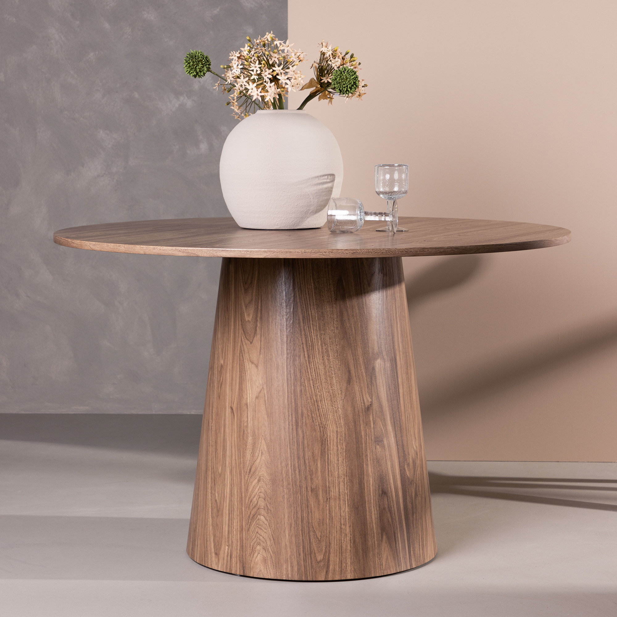 Matbord LANZO imponerar med sin Skandinaviska design och smakfulla utformning! Bordet har en genomgående helhetsdesign i MDF med en tunn, rund toppskiva och en vriden cylinderformad stomme som är centrerad under bordets mitt. Kulören synliggör materialets mönster som ger liv och rörelse till bordet. Skapa ett stilrent blickfång i hemmets hjärta - här hamnar ingen på kanten!