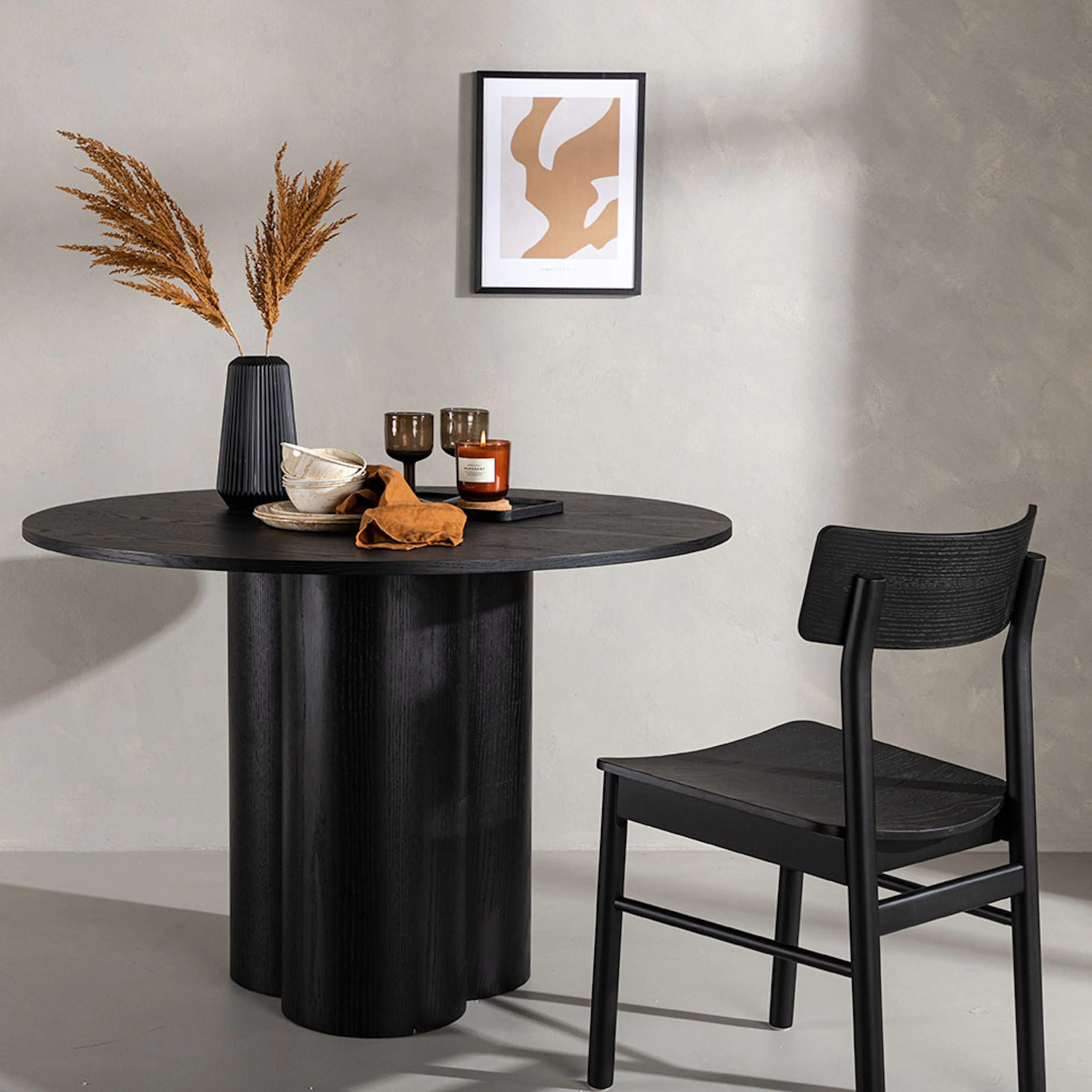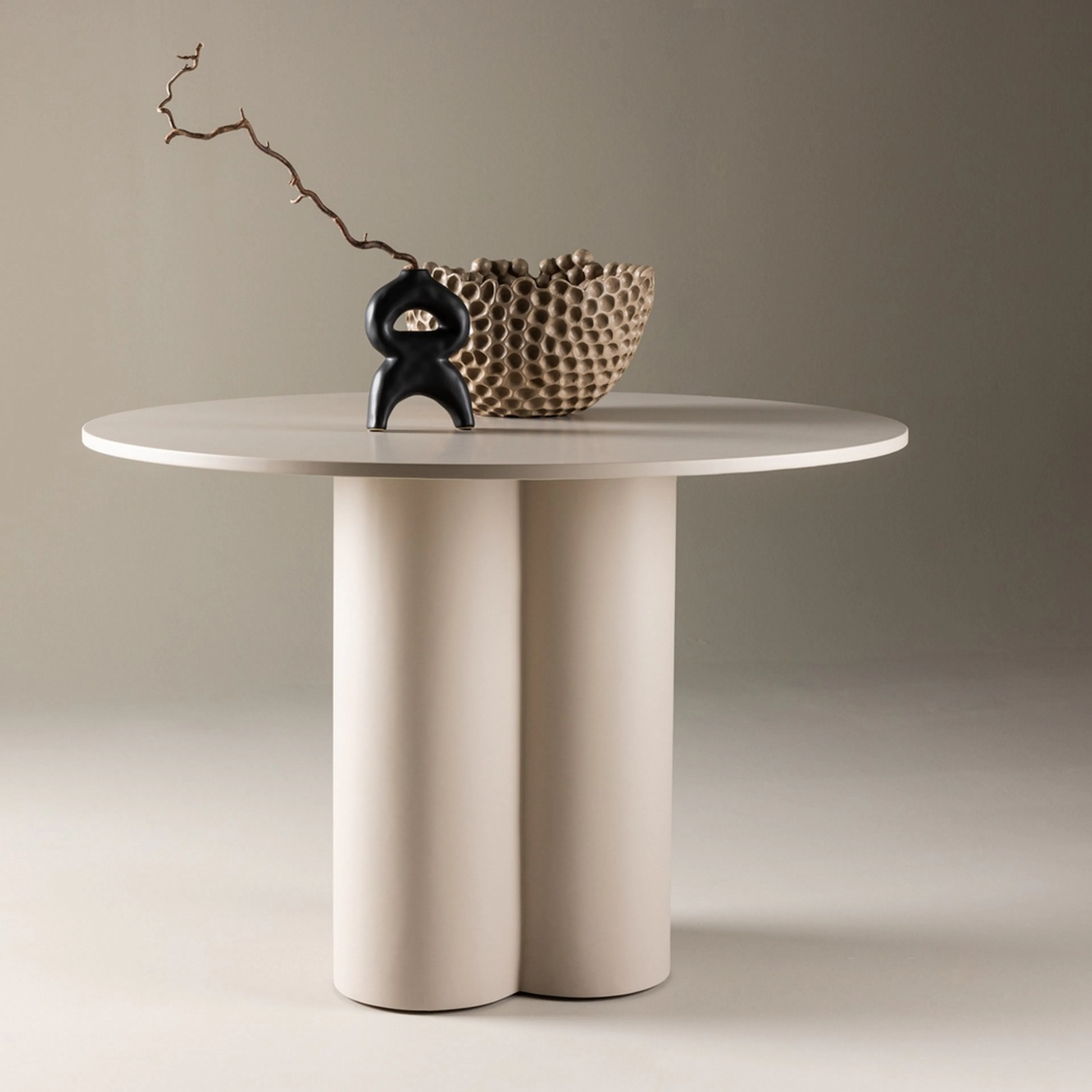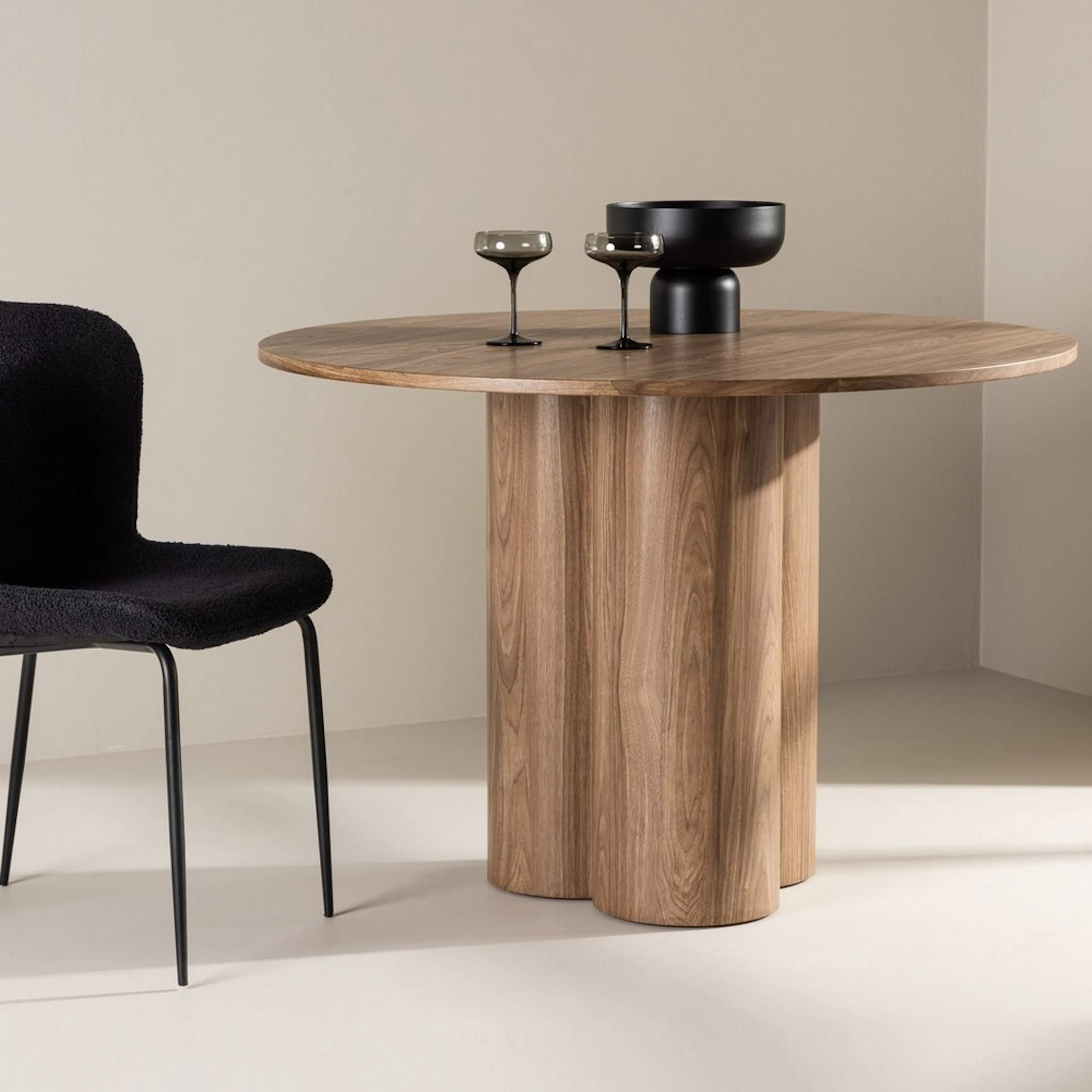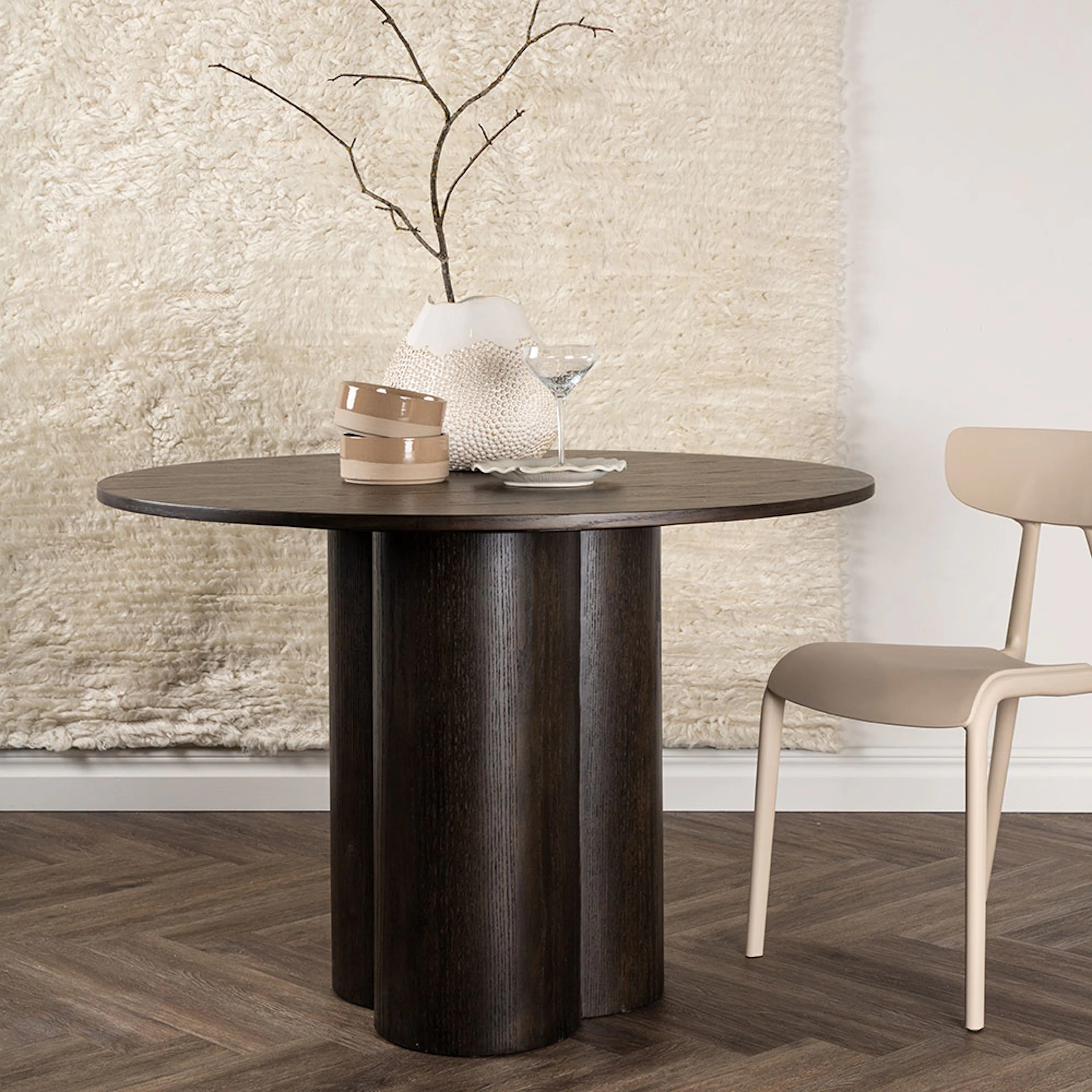 Matbord Olivia från Venture Home imponerar med sin Skandinaviska design och smakfulla utformning! Bordet har en genomgående helhetsdesign i MDF med en tunn rund toppskiva och tre cylinderformade ben som sitter samlat under bordets mitt.