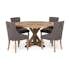 Matgrupp Lyon Ø150 cm Rund med 4 st Viktoria Stolar från In Living är en rustik matgrupp med en stor portion vintage charm. Det runda bordet är rejält med bordsskiva i vintage almträ och underrede i klassisk stil. Matbordet har mindre märken som tillför charm till möbeln och ger matbordet en naturlig look med genuin känsla. De medföljande stolarna har en elegant design och är bekväma att sitta länge i.