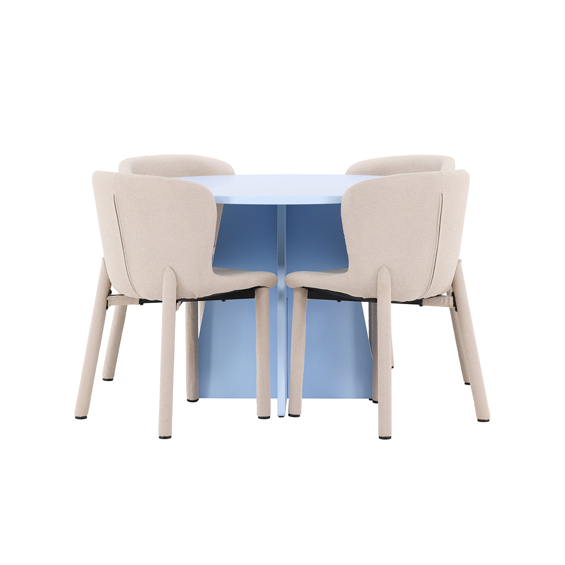 Matbordet Bootcut kompletterar Astoria med sin moderna och lekfulla design. Bordet har en rund form med en diameter på 110 cm och är helt täckt i en mjuk babyblå färg som ger en fräsch och luftig känsla till rummet. Den ljusa nyansen skapar en stilfull kontrast och ger ditt matrum en unik och inspirerande atmosfär. Bootcut är designat för att främja gemenskap och samtal, där dess runda form gör att alla runt bordet känner sig delaktiga.