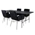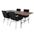 Matgrupp Chicago från Venture Home. Med ett matbord i valnötsfärgad MDF med faner med svarta bordsben i metall. Matchas med 4 st Annika matstolar med kopparfärgade stolsben i järn och svarta sitsar i sammet.