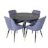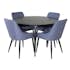 Matgrupp Dipp Rund med 4 Plaza Stolar från Venture Home är en stilren matgrupp med ett runt matbord med en stomme och ben i svart pulverlackerad metall samt med en bordsskiva i svart fanér med en kärna av MDF. Det medföljer fyra fåtöljer/matstolar i en helklädd design med ben i svart pulverlackerad metall. Rygg och sits i polyestertyg med mjuk stoppning. Lättare montering krävs.