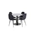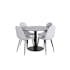 Matgrupp Estelle med 4 Pobbie Stolar PolyEstelletyg från Venture Home är en elegant matgrupp med ett runt matbord i modern design med trumpetfot i pulverlackerad metall med en bordsskiva i marmor. Det medföljer fyra matstolar i en helklädd design med ben i pulverlackerad metall med en lätt rundad rygg och sits i polyEstelletyg. Lättare montering krävs.