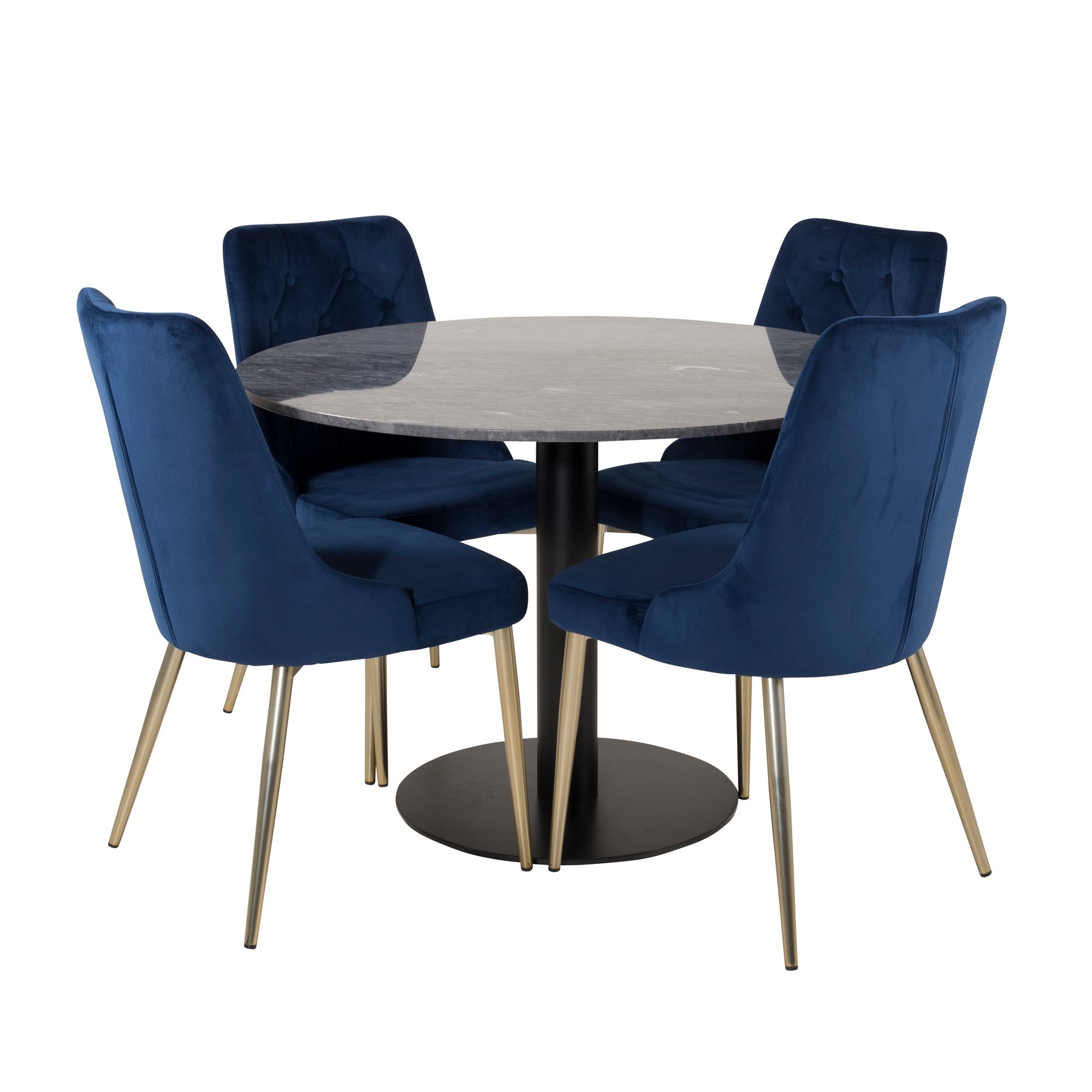 Matgrupp Venture HomeEstelle Rund med 4 Vera Stolar Sammet