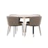 Uppgradera din matplats med den eleganta gruppen bestående av matbordet Flora och matstolarna Edina, där tidlös design och lyxig komfort möts för att skapa en harmonisk och inbjudande atmosfär i ditt hem.