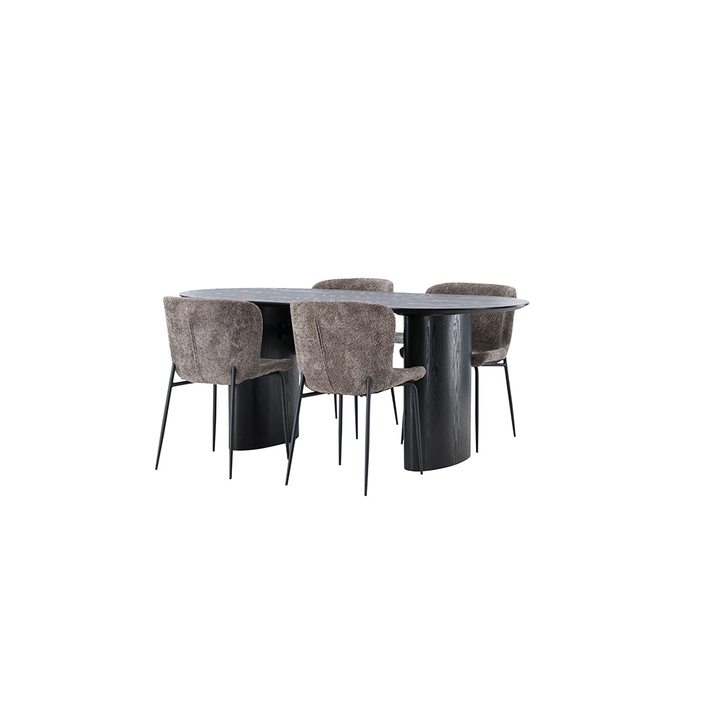 Sitt bekvämt och möblera modernt! Det ovala matbordet Isolde i kulör har en modern utformning med en oval bordskiva i MDF och robust stomme som ger ett stadigt intryck. Det levande materialet ger smakfull rörelse till blickfånget. Här tillsammans med modemedvetna matstolar från serien Modesto. Stolen är helklädd i lurvigt tyg med stilrent smala stolsben i metall. Den lätt rundade ryggen och stoppade sittdynan ger extra komfort och förlänger trivsamma måltider kring matbordet.