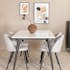 Matgrupp Jolie från Venture Home. Med ett förlängningsbart matbord i vit HPL och MDF med svarta bordsben i järn. Matchas med 4 st Valentina matstolar med svarta stolsben i metall och ljusgråa sitsar i polyester.