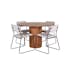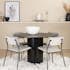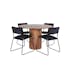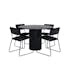 Matgrupp Bianca, med ett runt matbord i MDF med faner med bordsben i trä och MDF. Matchas med 4 st Kungshamn matstolar med sitsar i konstläder.