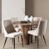 Komplettera ditt Olivia-bord med fyra eleganta Leone-stolar, klädda i lyxig manchester. Dessa stolar erbjuder inte bara en estetiskt tilltalande design, utan också hög komfort tack vare sin mjuka och slitstarka klädsel. Den neutrala beige färgen matchar perfekt med bordets mocca ton och bidrar till en harmonisk och sofistikerad atmosfär i ditt matrum. Stolarna Leone är designade med både stil och ergonomi i åtanke, vilket gör dem till en fröjd att sitta på under långa middagar.