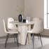 De fyra Polar-stolarna kompletterar bordet perfekt med sina eleganta sitsar klädda i polyester teddy. Dessa stolar erbjuder både komfort och stil, vilket gör dem idealiska för långa, njutbara middagar med familj och vänner. Deras moderna design med hög ryggstöd och mjuka sitsar ger ditt matrum en sofistikerad och samtida touch.