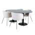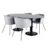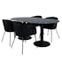 Matgrupp Oslo från Venture Home. Med ett ovalt matbord i svart marmor glas med svarta bordsben i metall. Matchas med 4 st Bergen matstolar med svarta stolsben i järn och sitsar i sammet.
