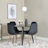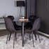 Med sin eleganta svarta bordsskiva passar Venture Homes runda matbord Plaza perfekt till både vardags och fest! Här tillsammans med de sittvänliga matstolarna Polar i läcker färgskala.