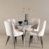 De fyra medföljande Leone-stolarna kompletterar bordet på ett utmärkt sätt. Dessa stolar är klädda i mjuk manchester, vilket ger en bekväm och inbjudande sittupplevelse. Manchester-tyget är känt för sin slitstyrka och komfort, vilket gör att du och dina gäster kan sitta bekvämt under långa måltider och samtal.