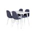 Matgrupp Pobbie, med ett matbord i vit MDF och vita bordsben i metall. Matchas med 4 st Pobbie matstolar med vita stolsben i metall och sitsar i polyester.