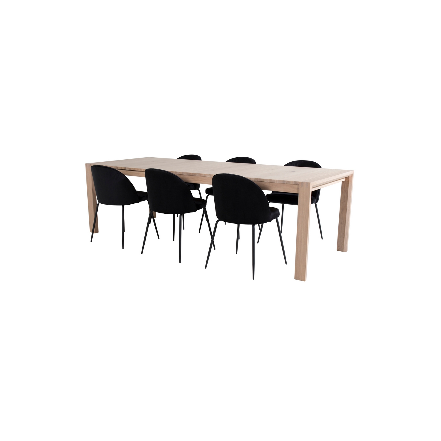Matgrupp Venture Home Shy med 6 Wrigley Matstolar är en matgrupp med ett förlängningsbart bord i stilren och modern design med en bordskiva i ekfanér. Det medföljer sex stilrena matstolar. Lättare montering krävs.