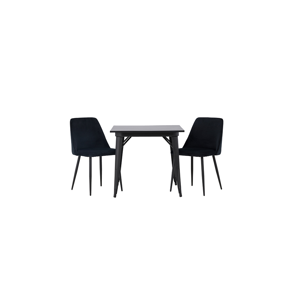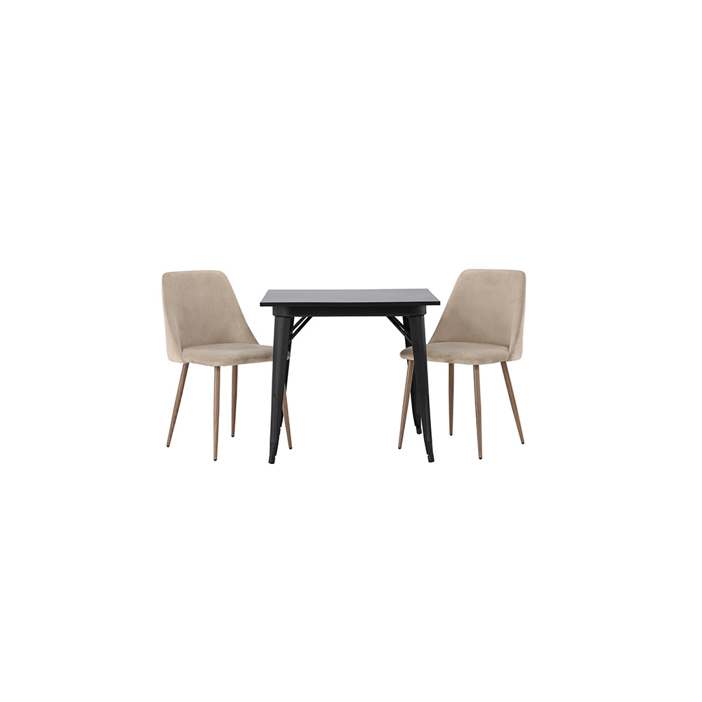 Det kvadratiska matbordet Tempe har en nätt storlek och trendig, Skandinavisk utformning. Tillverkad med en bordsskiva i MDF och bordsben i metall. Här i snygg kombination med matstolar från serien Night. Stolen har en helklädd sits i PU klädsel som känns lika lyxig som elegant och benen är i stål. Sitsen är även stoppad för extra komfort.
