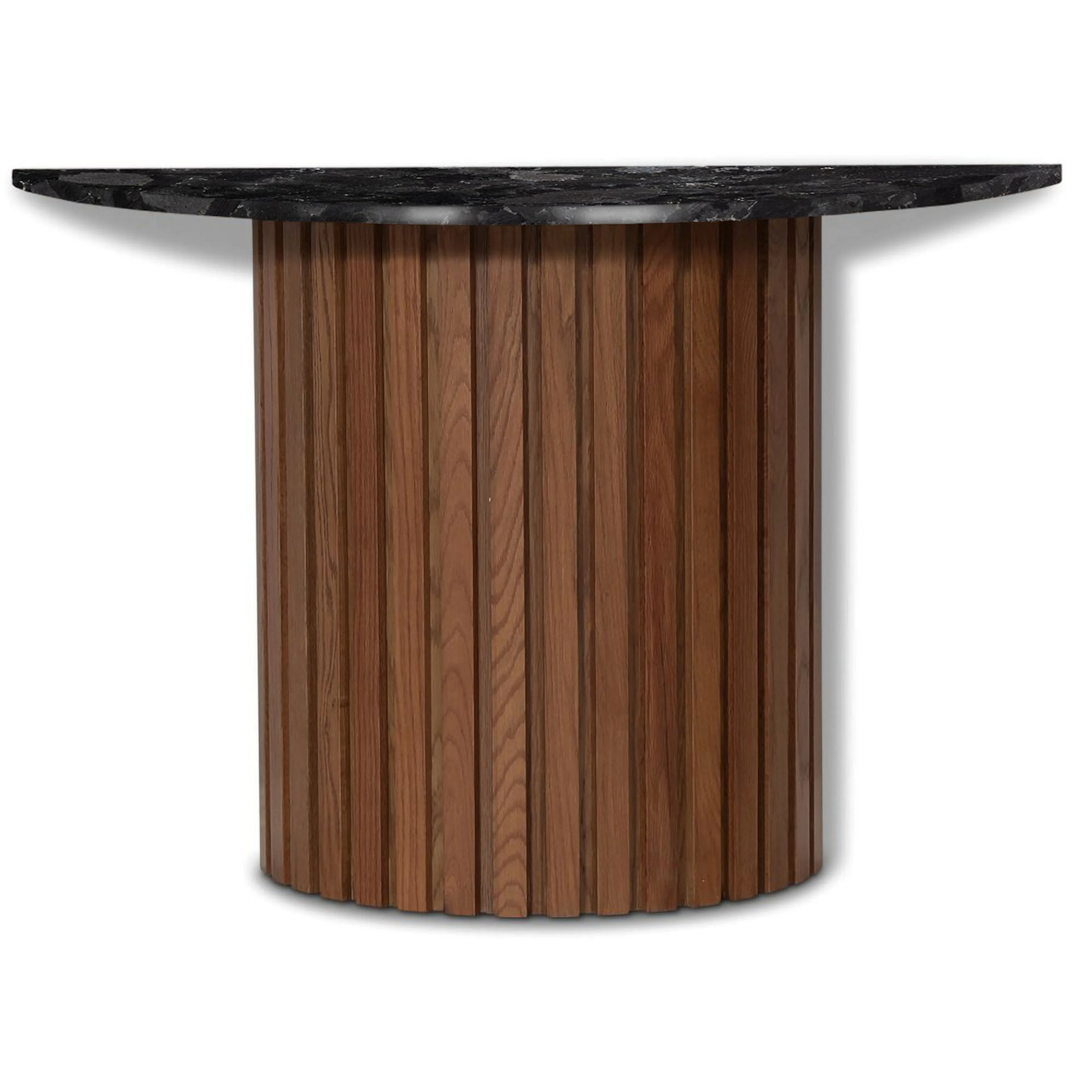 Half Moon konsolbord/avlastningsbord kommer från en stilfull och modern serie från varumärket RGE. Med skandinavisk design i fokus, får du en naturnära miljö med träunderredet och tillhörande skiva i sten.