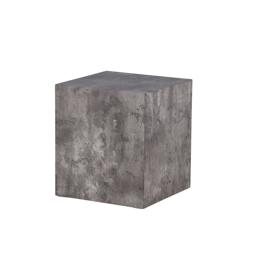 Designen är robust och industriell med raka nordiska former och bordets storlek gör att det passar utmärkt både som sidobord intill soffgruppen eller solitär som piedestal.