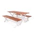 Tillverkat i stål, och bord och bänkar i svensk kärnfuru från Norrland, FSC ®-märkt.