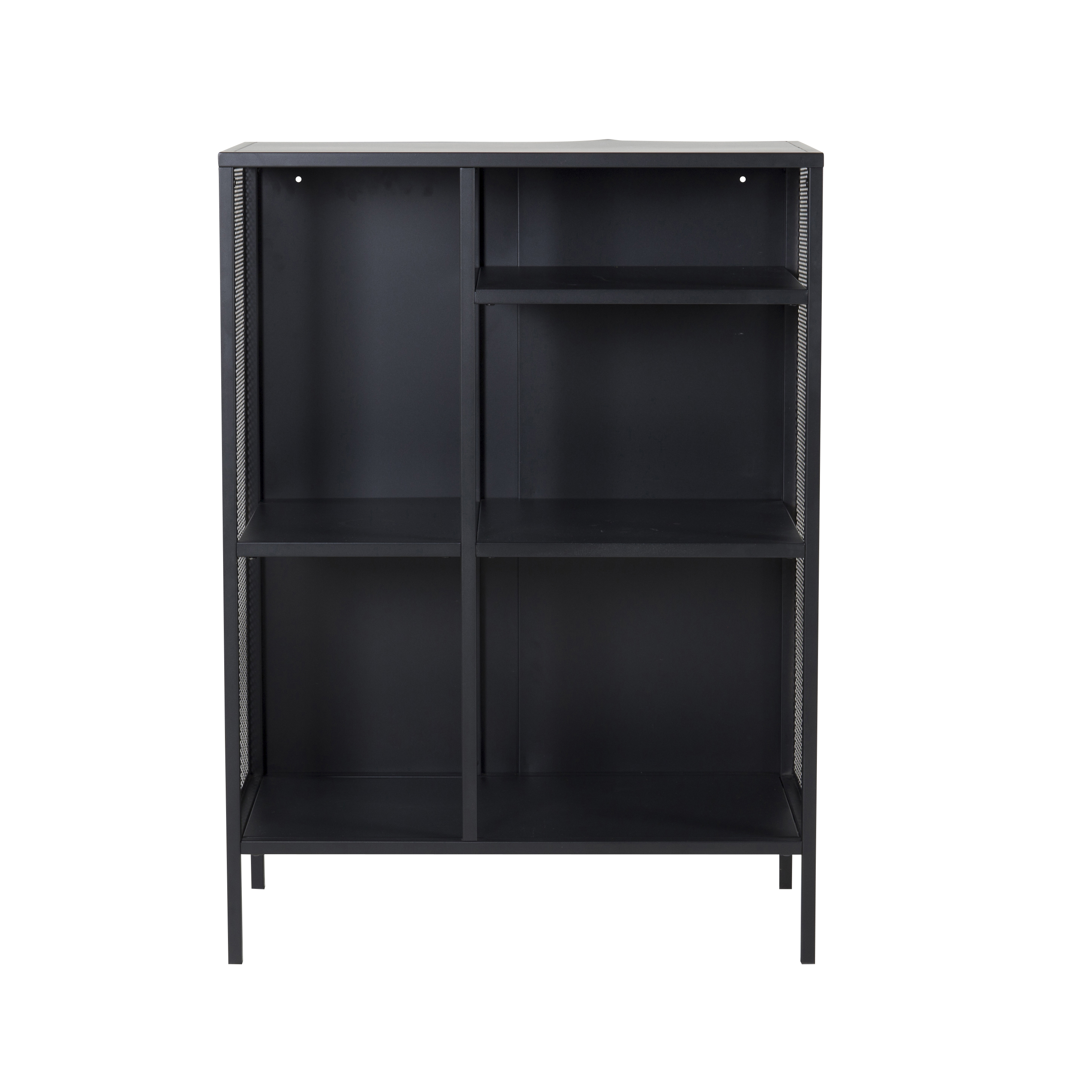 Misha bokhylla från Venture Home är av pulverlackerat stål med tre hyllplan i olika höjder. Bokhyllan har ett dekorativt nät på sidorna.
