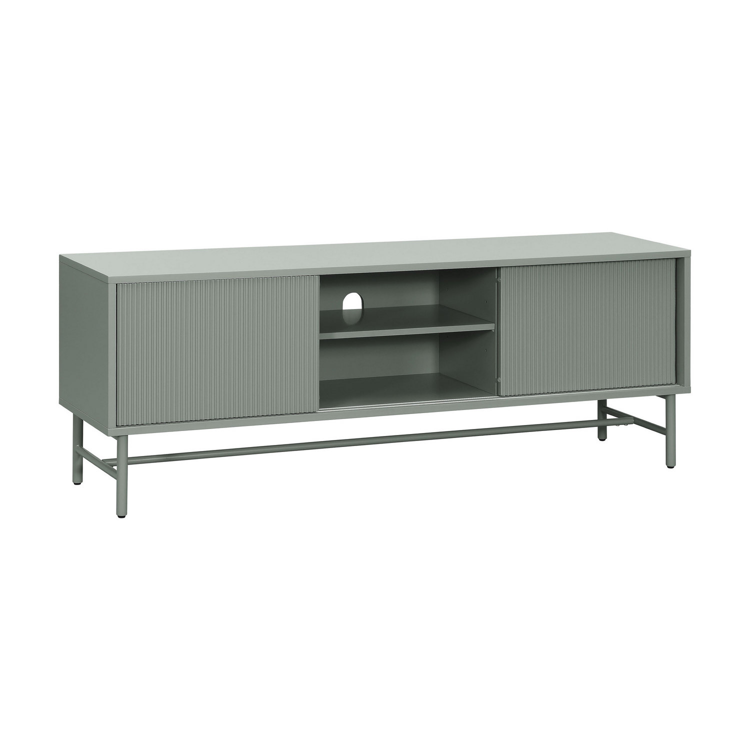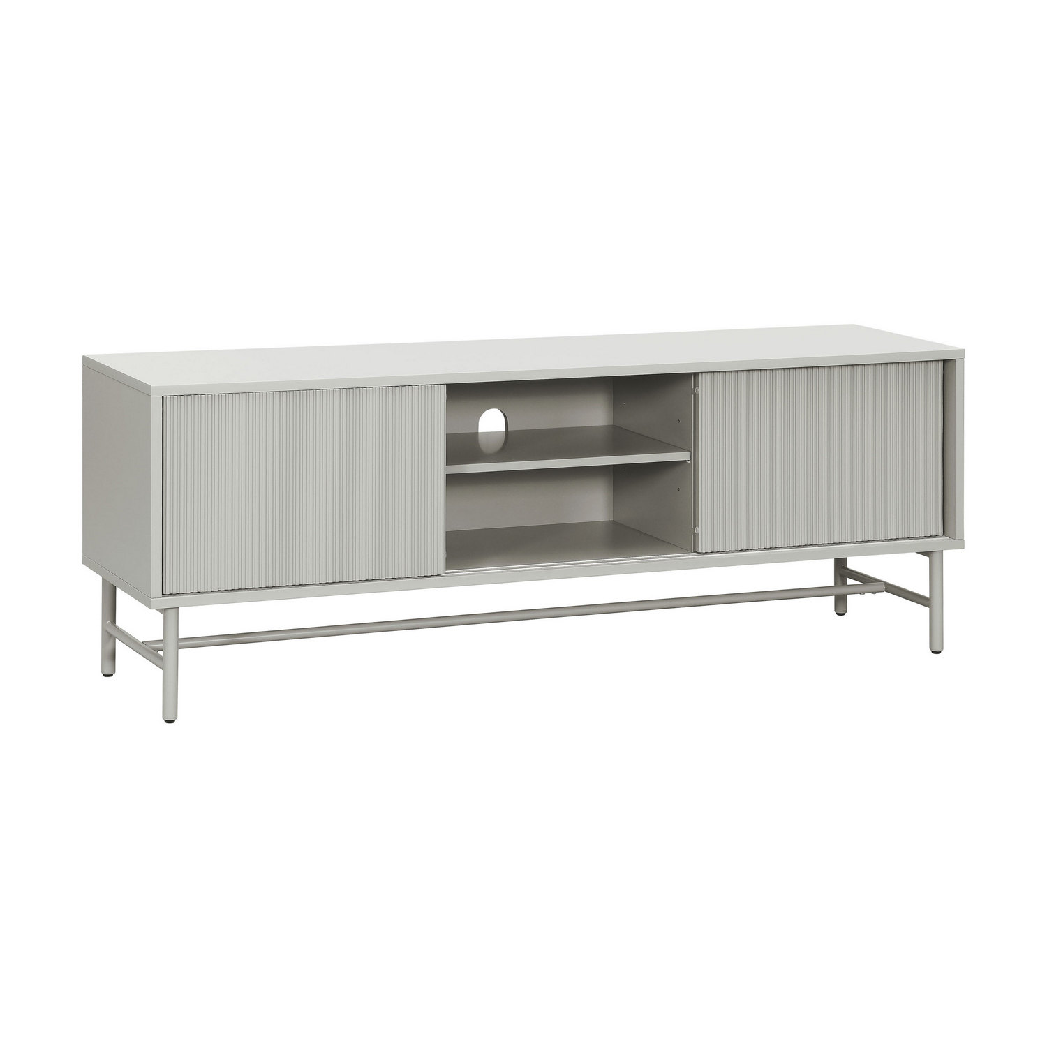 Ribbade skjutdörrar som kombinerar form och funktion. Praktisk kabelutgång baktill. Slank design vilket är idealisk för mindre utrymmen. Stabilt underrede i lackerad metall. Serien Matterhorn består av flera smarta förvaringmöbler i matchande design. Kombinera din tv-bänk med ett sidobord och vitrinskåp för en komplett uppsättning.