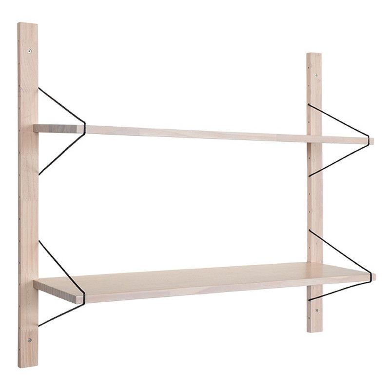 I det här utförandet har Elma vitpigmenterade hyllplan och konsoler i furu och svarta metallstag.