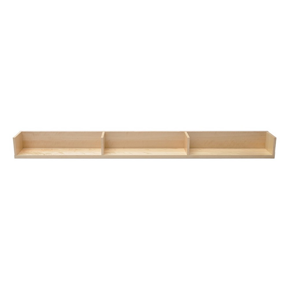 Elsa vägghylla/ramp i björk är en 180 cm bred hylla som kan placeras i vägg för att ge goda förvaringsutrymmen.